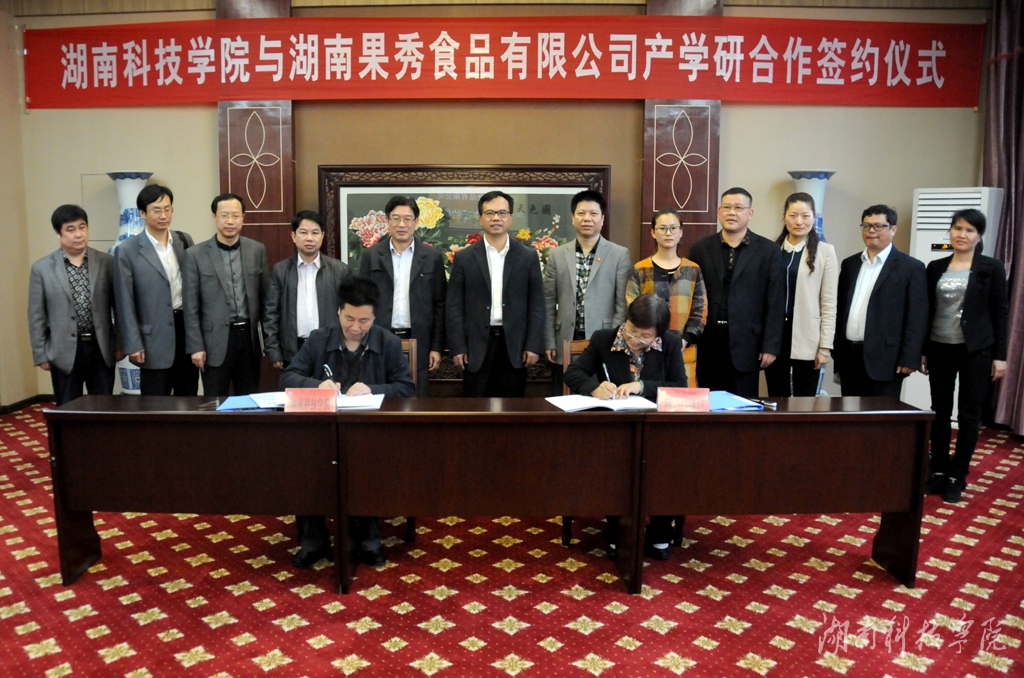 本网讯(记者 李瑛 唐玲君 刘宇航 摄影 秦峰)4月23日,全国人大代表、湖南果秀食品有限公司董事长阳国秀与bat365官网校长曾宝成共同签订产学研合作协议。校领导陈弘、曾宝成、宋宏福、李常健、程智开及教务处、科技处、发展规划与学科建设处、生物与化学工程学院等领导共同见证了签约。阳国秀、胡可等优秀企业家同时向同学们传授创业经验,与青年学子分享创业心路和人生体会,给予创业指导,激发创业梦想。
