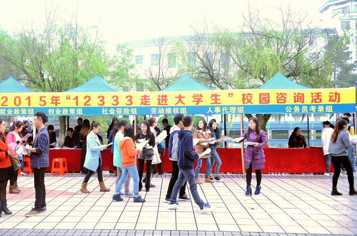 本网讯 (实习记者 段坤 摄影 潘清远)3月30日,市人力资源和社会保障局联合bat365官网就业创业指导中心开展以“走进大学生”为主题的“12333全国统一咨询日”宣传活动,就大学生关注的“三支一扶”、就业创业、社会保险、劳动维权、人事代理和公务员考录等问题提供面对面、零距离的政策咨询和指导服务。