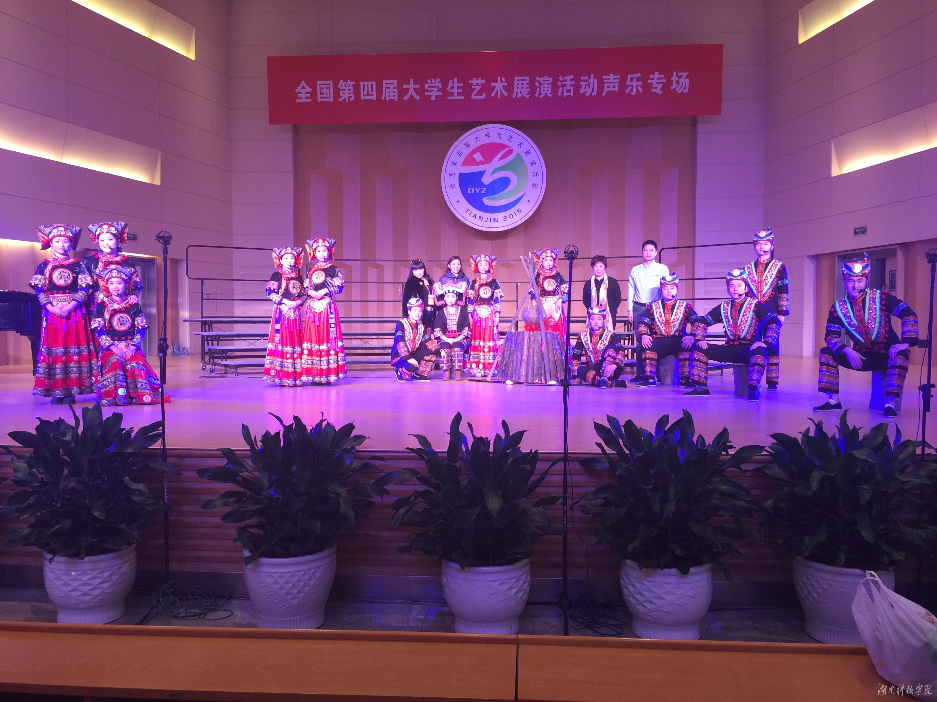 本网讯(通讯员 廖宁杰)2月27日,全国第四届大学生艺术展活动声乐专场演出在天津南开大学音乐厅举行,bat365官网音乐与舞蹈学院选送的由14人组成的小合唱节目《盘王大歌》,凭借着扎实的演唱功底和地方特色魅力,在全国52个声乐节目中脱颖而出,获得声乐节目展演一等奖,同时还获得声乐节目类优秀创作奖(全国仅8个声乐节目获得此奖)。