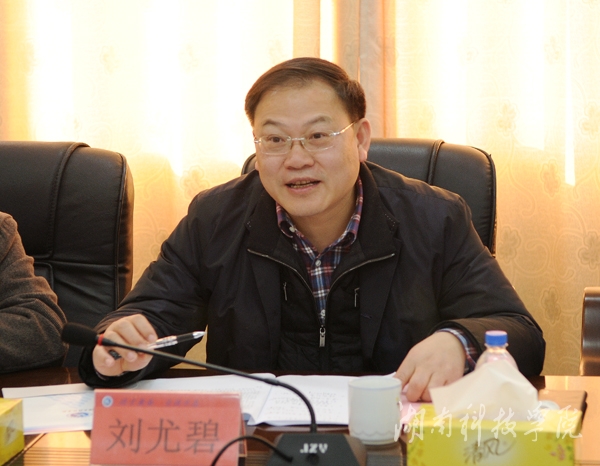校党委书记陈弘代表学校对刘尤碧一行表示热烈欢迎。他从学校基本情况、主要办学成就、学校发展定位、办学思路与目标以及未来发展规划等方面作了介绍。陈弘说,学校根在永州,必须始终立足永州,围绕永州经济与社会发展目标,做好人才培养与地方需求、学科专业与地方产业、科研成果与企业“三个对接”,努力把学校建设成为质量优良、特色鲜明、环境优美的区域型、应用型大学。