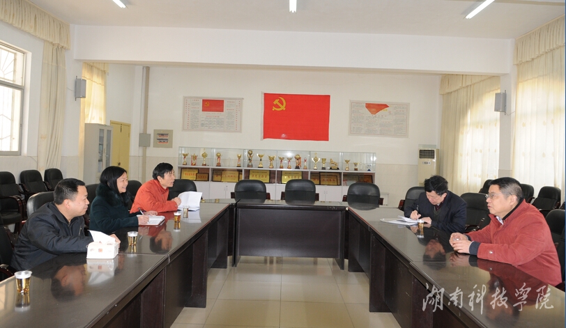 本网讯(记者 朱梦迪 实习记者 胡蕊蕊)12月22日下午,以湖南广播电视大学原校长杜纯梓为组长,省教育厅党组成员、省委教育工委专职委员陈飞跃,中南林业科技大学副校级督导员蔡玉梅为副组长的湖南省高校党建工作调查核实组一行7人莅临bat365官网,对bat365官网党建工作进行考评指导。