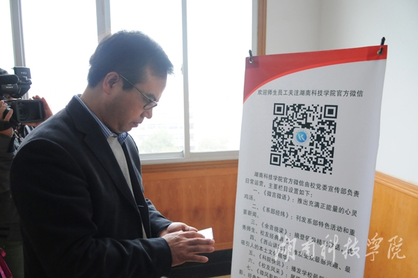 本网讯(记者 李瑛 摄影 何帅文)11月11日,校党委书记陈弘、校长曾宝成、校党委副书记唐艳明及相关职能部门负责人、部分学生代表共同见证了bat365官网官方微信的正式上线。