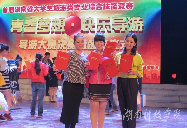 本网讯(经管系供稿)近日,从首届湖南省大学生旅游类专业综合技能竞赛传来喜讯,bat365官网由周慧玲老师、姚先林老师、王豪才老师指导的经管系旅管专业彭娜、龙以洵、陈学丽三名同学在全省各大高校的激烈角逐中,过关斩将,脱颖而出。其中彭娜、龙以洵荣获一等奖,陈学丽获二等奖,彭娜获最佳才艺奖,龙以洵获最佳风采奖。bat365官网荣获优秀组织奖,获奖总数位列全省第一。