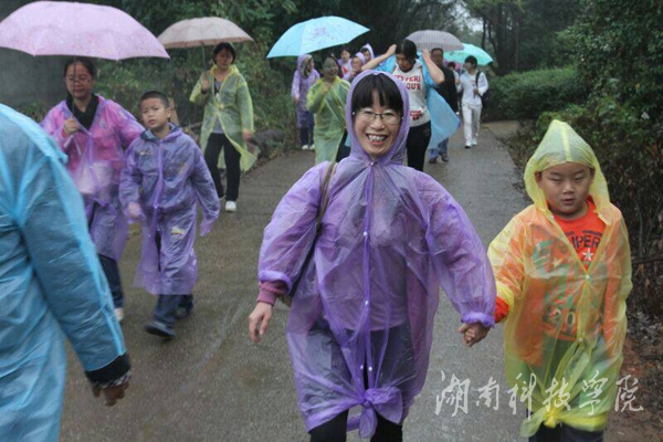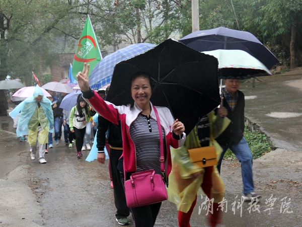 毅行进行到一半,雨越下越大,道路越来越难走,特别是山路,道路崎岖,泥泞不堪,让毅行活动越来越具有挑战性,参加者每走一步脚都会陷入泥泞之中。电子工程系的老师们却越挫越勇,一路相互加油鼓劲,互帮互助。