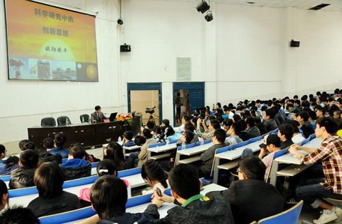 下午三时,欧阳晓平来到综合楼D座212,为电子工程系全体师生作了题为《科学研究中的创新思维》的学术报告,就创新思维与创新文化以及创新实践作了系统的阐述。报告中,他还与学生互动,为提出问题的学生一一解答。