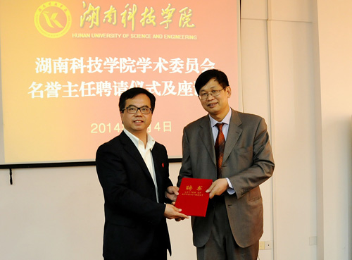 欧阳晓平就自己的求学、研究生涯和取得的成绩进行了介绍,他用自身的例子证明了坚持是成功的基础。他说,搞研究不是一天两天的事,平时必须多琢磨和多运用。他对学校的发展提出了几点建议,学校发展立意要高、定位要准、思路要可行,可利用聘请院士这个通道,扩展平台,以院士带教师,以资源促改革,推动学校更好更快发展。