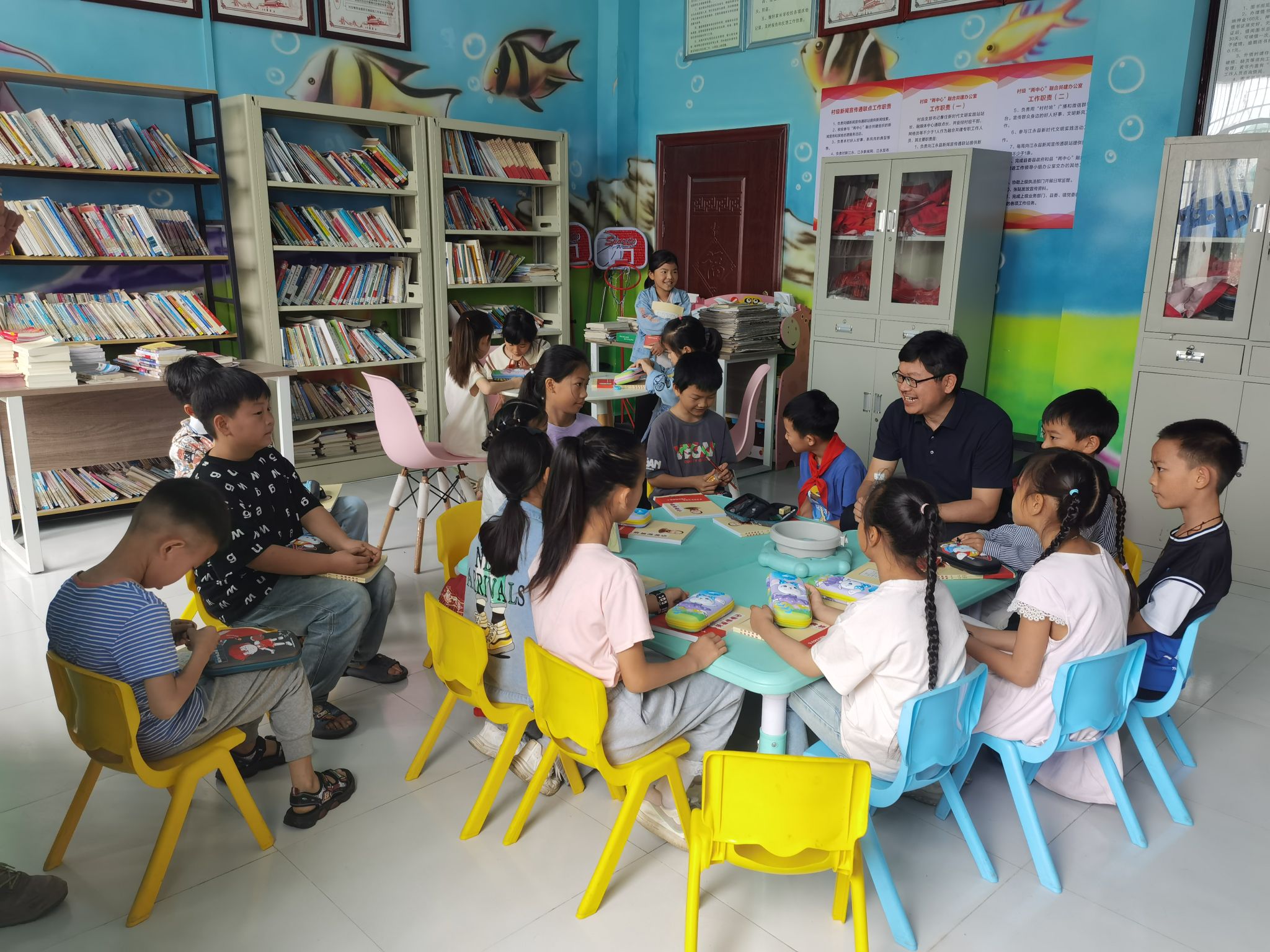 在读书分享会环节,大家结合自身经历,从不同角度积极分享阅读心得,呈现出一场独特精彩的“书香盛宴”。“老师们不仅为我们送来了图书和文具大礼包,还指导我们如何去阅读,这是我们收到的最好礼物!”参加活动的尹成西小朋友开心地说道。