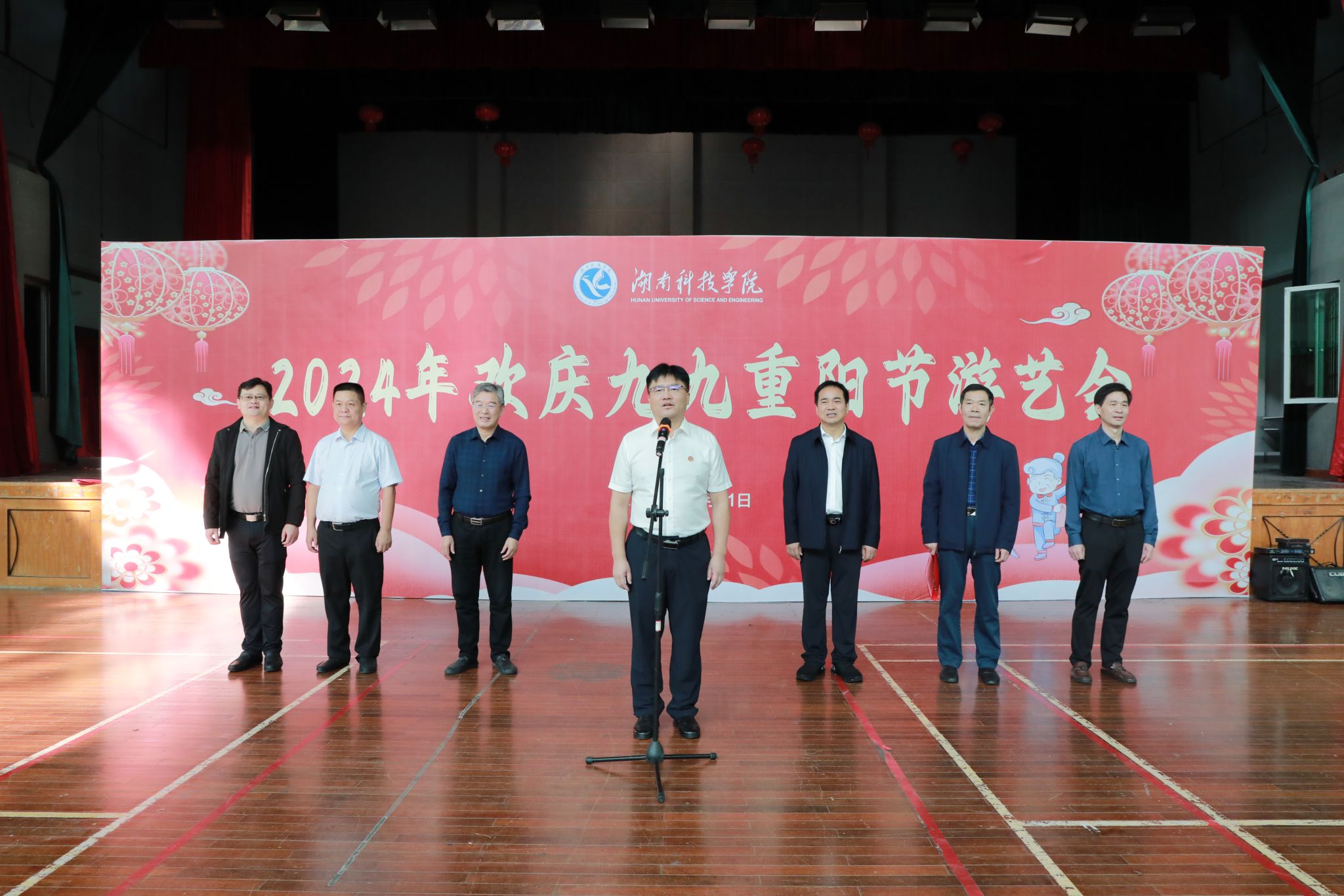 本网讯(记者 汤梦洁 袁馨)金秋九月好时节,菊花烂漫重阳至。10月11日,学校在体育馆举行2024年“欢庆九九重阳节”游艺会。校党委书记李钢,党委副书记、校长黄创霞,党委副书记宋宏福,党委委员、副校长吴小林来到活动现场,为老同志们送上诚挚的祝福。游艺会由吴小林主持。