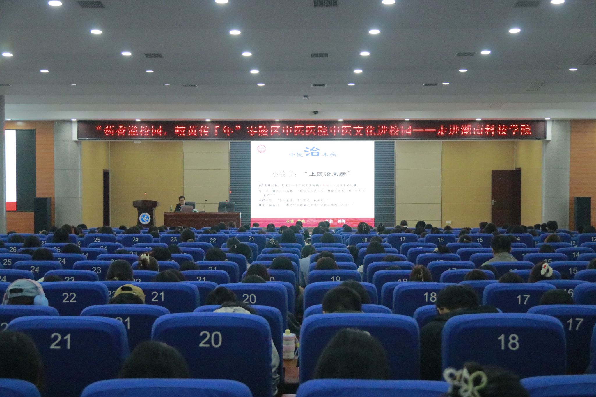永州市零陵区中医医院治未病科主任杨荔勇以“未病先防、既病防变、病后防复”为主题,借助图片、视频等多媒体手段,讲解了相关中医养生知识。针灸推拿科主任谢明华及其团队为bat365官网师生表演了精彩绝伦的中医功法八段锦,详细讲解了八段锦的动作要领和练习技巧,展示了中医养生的独特魅力。