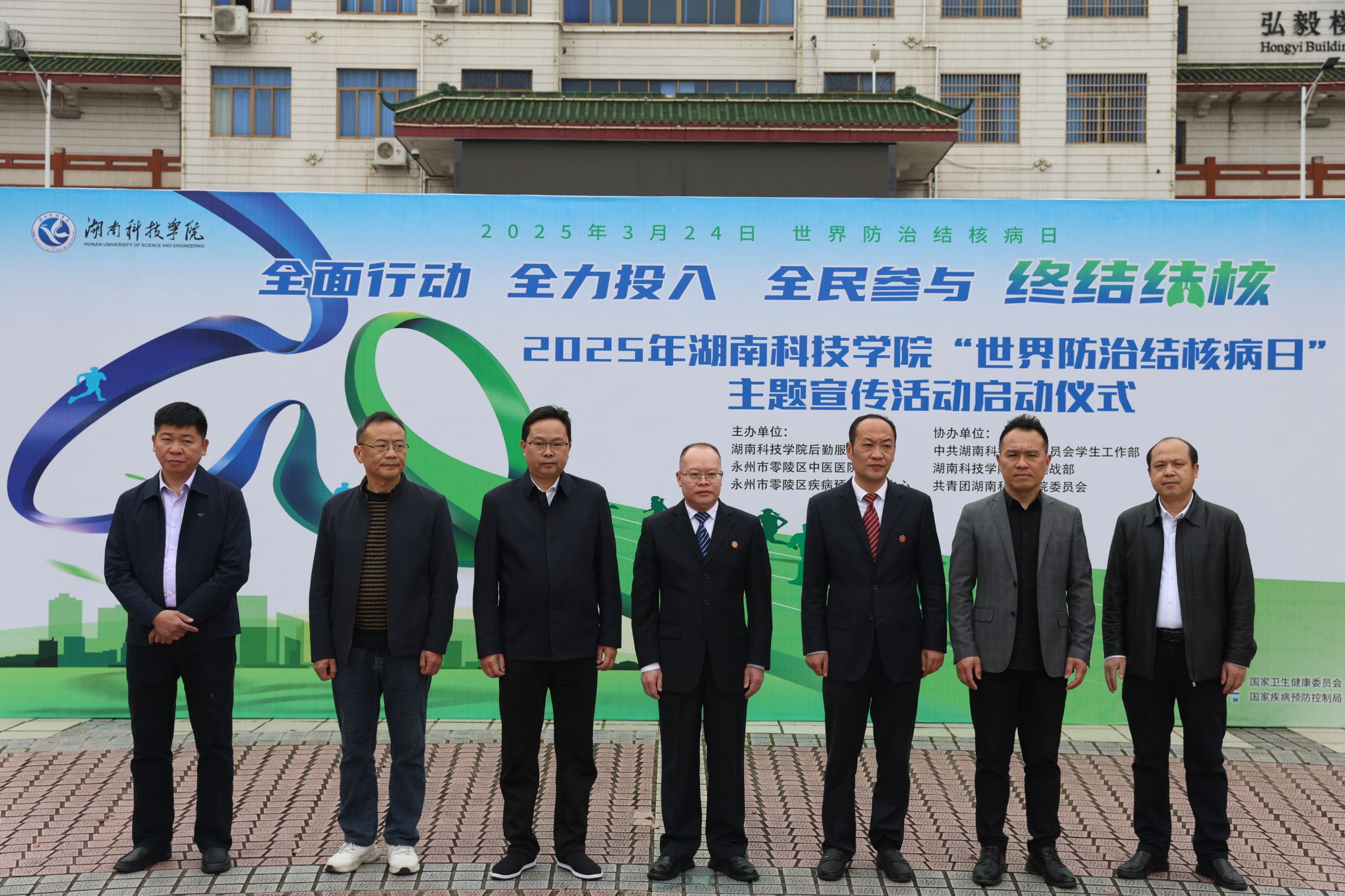 本网讯(记者 谷利梅 摄影 温百石 何佳 张倍嘉)3月18日下午,bat365官网在舜德广场开展“世界防治结核病日”主题宣传活动,永州市零陵区中医医院党委书记唐爱民,副院长庄凯印、唐诚,永州市零陵区疾病预防控制中心纪检书记唐冰清,校党委委员、副校长何海,党委委员、组织部部长杨涛出席活动,学生工作部部长谷利民、后勤服务中心主任刘东方参加活动。