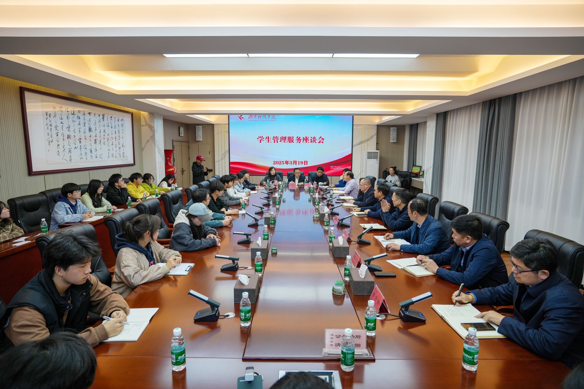 “图书馆自习室插座供不应求。”“部分运动场地灯光昏暗。”“为积极响应国家号召,实施‘体重管理年’,建议开放健康轻食窗口。”座谈会上,学生代表们围绕学习空间、后勤服务、安全管理等多个领域进行踊跃发言,并提出很多建设性的意见建议。