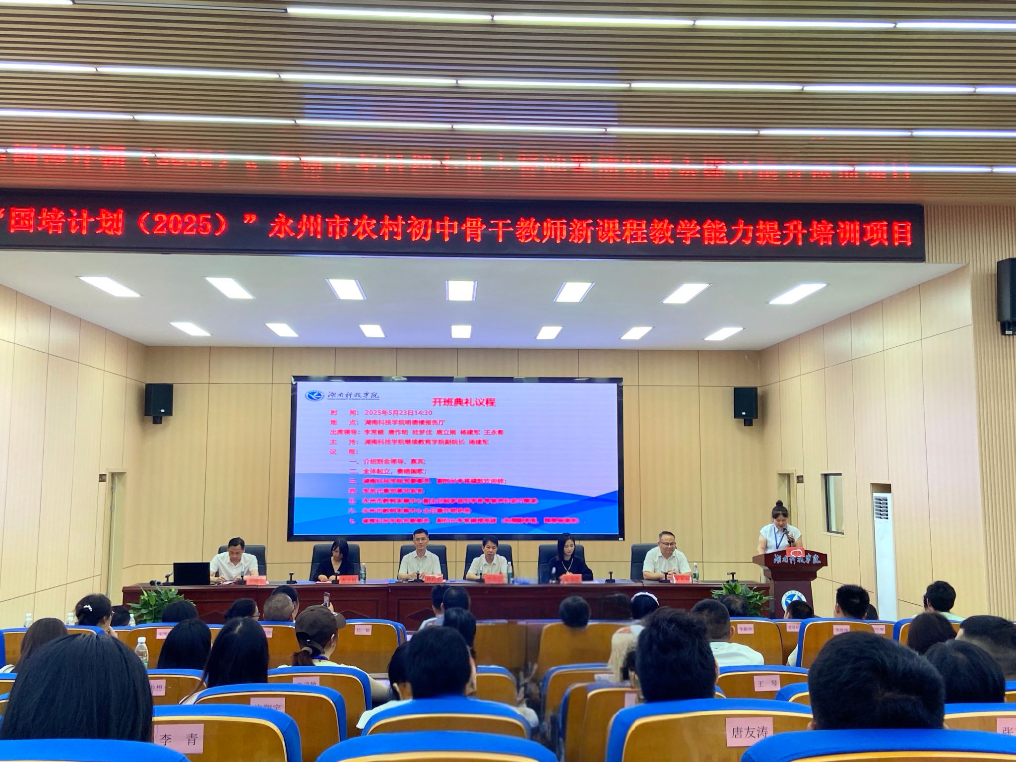 本网讯(通讯员 曹湖云 谢芷仪)5月23日下午,“国培计划(2025)”永州市农村初中数学和物理骨干教师新课程教学能力提升培训项目在bat365官网开班。永州市教师发展中心主任唐作明、副主任眭梦佳等领导以及来自永州市各县区的初中数学、物理学科共140名骨干教师参加开班典礼。bat365官网党委委员、副校长李常健出席开班典礼并致辞。