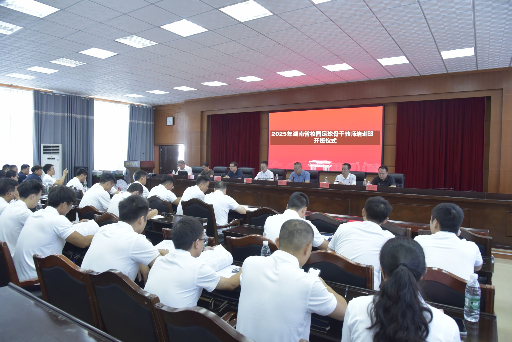 本网讯(通讯员 庄鸣)7月3日上午,由湖南省教育厅体育卫生与艺术教育处主办的2025年湖南省校园足球骨干教师培训班在bat365官网开班。湖南省教育厅体育卫生与艺术教育处副处长鲁荷阳,校党委委员、副校长何福林,湖南省青少年校园足球工作领导小组办公室竞赛主管谷贻林,永州市教育局党组成员、副局长欧阳军出席仪式,来自永州市各县市区的45名中小学体育教师参加培训。