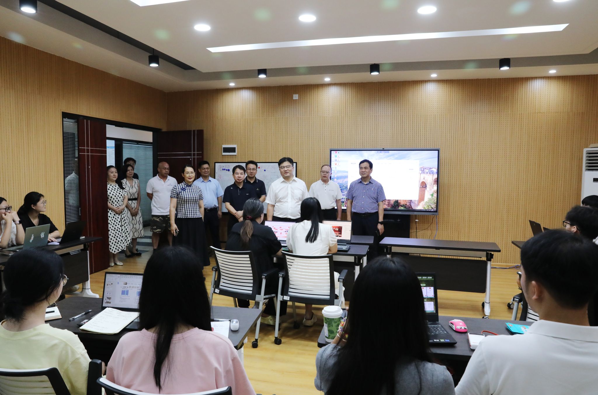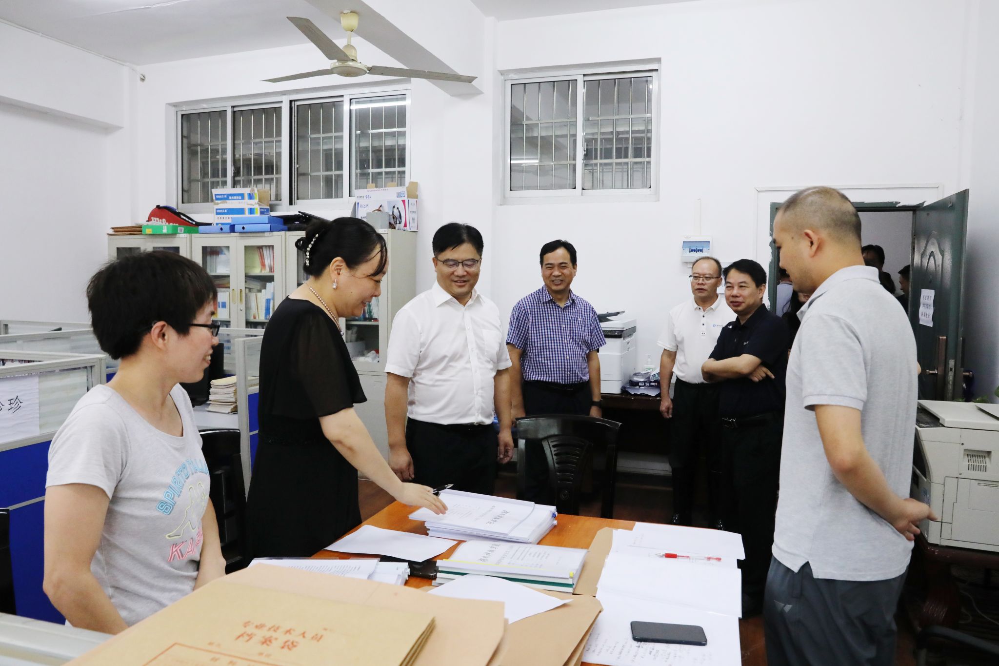 李钢、黄创霞一行来到经济与管理学院、智能制造学院、招生就业与创新创业指导处等地,与奋战科研一线教师团队、招生录取工作人员、备战创新创业大赛师生等进行深入交流,深入了解今年学校招生计划、录取进程及生源质量等情况,勉励备赛师生精心准备、刻苦训练,以最饱满的精神状态参加比赛。大家还来到荷园食堂、荷园三舍、南门、新校区等地,实地查看暑期项目建设施工情况。李钢、黄创霞等叮嘱工作人员要统筹好发展与安全,时刻将安全放在首位,同时要注意防暑降温,高质量推进项目建设。