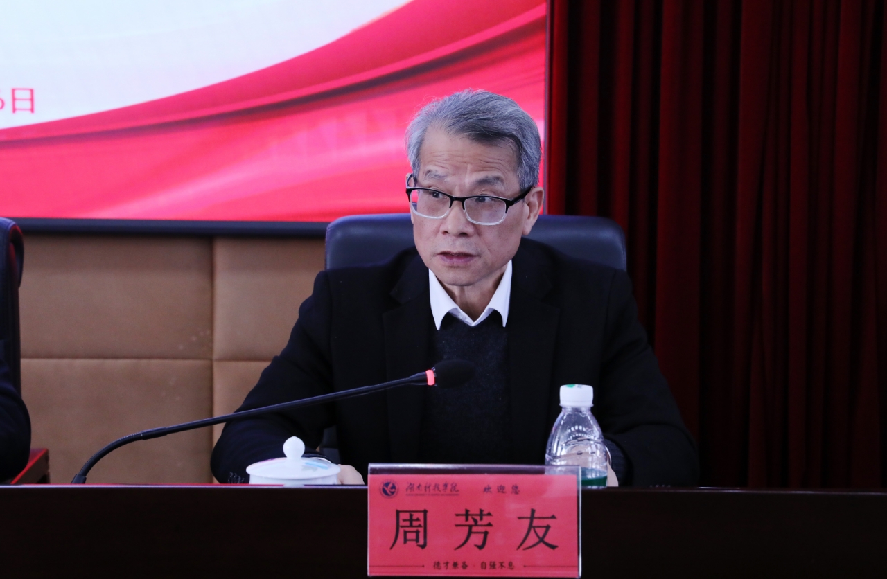 周芳友在讲话中强调,一是要坚持立德树人,提高人才培养质量,要以习近平新时代中国特色社会主义思想凝心铸魂,不断提高学校本科教育教学质量。二是要深化改革创新,加快推进事业发展,进一步凝练办学特色,改善办学条件,整合各方资源,勇于争先进位。三是要梳理检视问题,扎实推进整改落实。实现以评促建、以评促改、以评促管、以评促强,做好审核评估“后半篇文章”,为实现湖南省“三高四新”美好蓝图和助力教育强国、教育强省建设作出新的更大贡献。