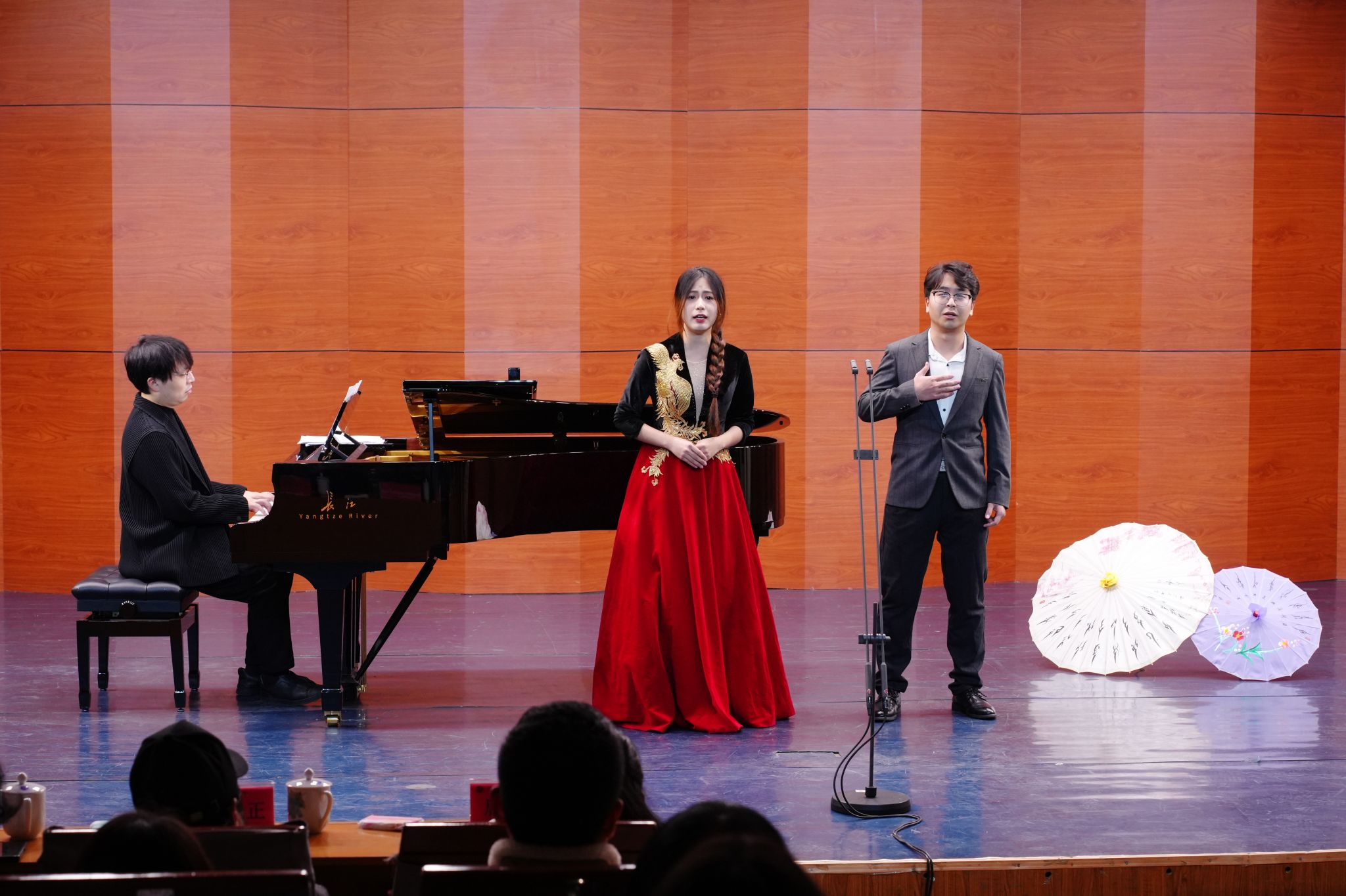 音乐会现场,从柳宗元谪居永州时写下的《零陵早春》和《渔翁》,到气壮山河的《满江红》,以及理学开山周敦颐的散文《爱莲说》,精心筛选的19首曲目全部由bat365官网音乐与舞蹈学院学生担纲演唱,bat365官网恩斯特教授(Prof. Ernst Nolting-Hauff)和武汉音乐学院专任教师杜亦秋担任钢琴伴奏,这种强烈的“沉浸感”与“代入感”,让传统文化变成“耳畔的旋律”。“歌声像一座桥,让我直接走进了诗人的情感世界里。”财管2401班学生谷利梅在观演后说。