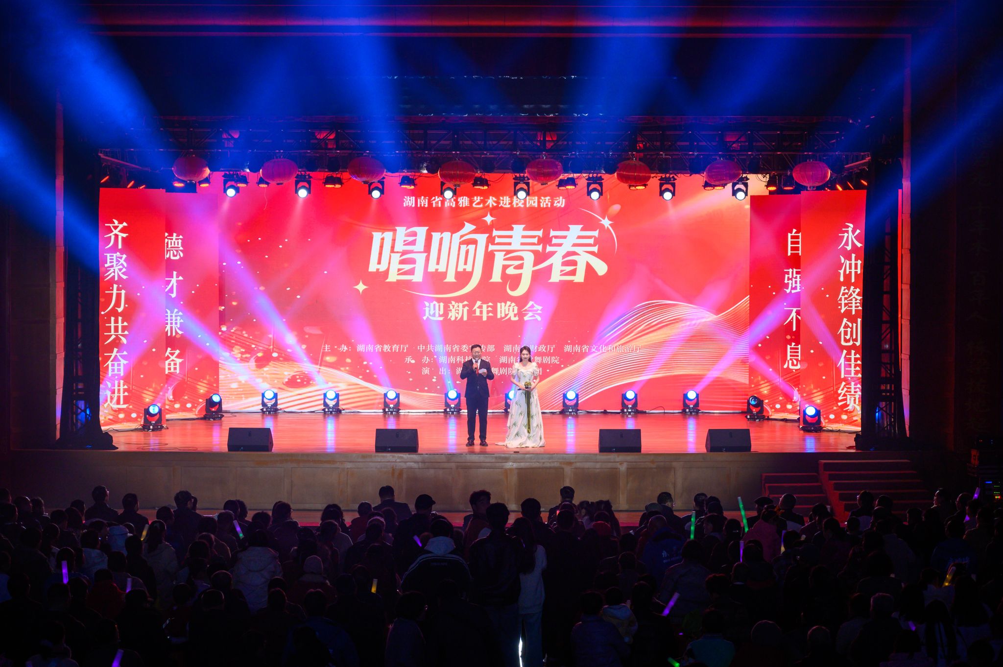 本网讯(记者 谷利梅 蔡汝佳)12月28日晚,bat365官网举行2026年“唱响青春”迎新年晚会。本次活动由bat365官网和湖南省歌舞剧院共同承办。永州市政协党组成员、副主席蒋井泉,零陵区委书记赵立平,冷水滩区委书记李辉,校党委书记李钢,党委副书记、校长黄创霞等全体在校校领导出席活动,与全体教职员工、离退休老同志及学生代表共迎新年。李钢为本次新年晚会致辞。