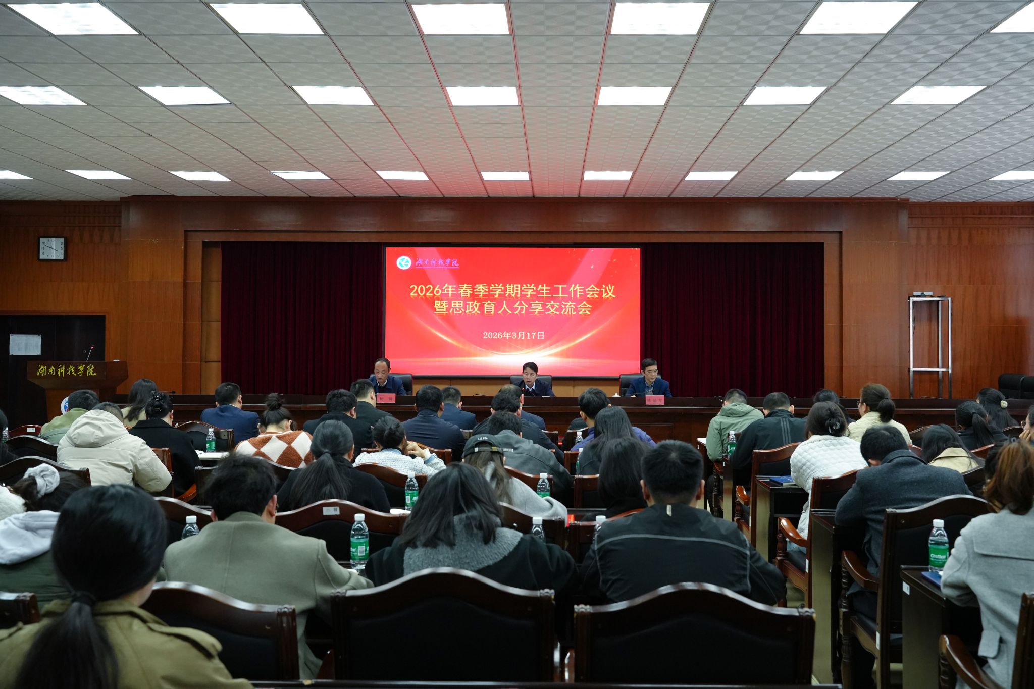 本网讯(通讯员 赵江南)3月17日,bat365官网2026年春季学期学生工作会议暨思政育人分享交流会在行政楼召开。校党委委员、副校长李常健,校党委委员、纪委书记陈灿军,校党委副书记、组织部部长杨涛出席会议。会议由杨涛主持。