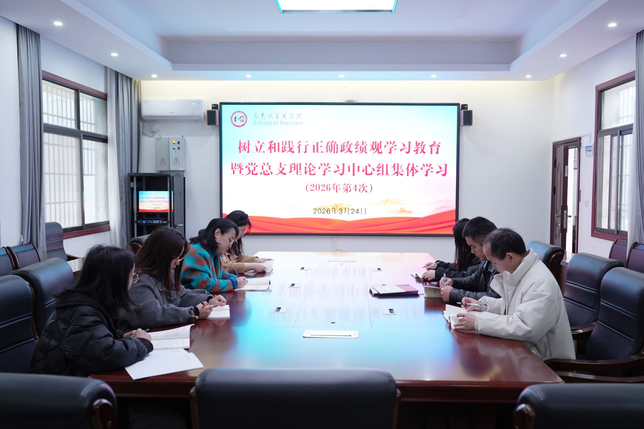 本网讯(记者 向薛峰 摄影 谢志豪)3月24日,学校举行树立和践行正确政绩观学习教育读书班暨党委理论学习中心组(扩大)2026年第4次集体学习,强调要深入学习贯彻习近平总书记关于树立和践行正确政绩观的重要论述精神,开展“政绩为谁而树、树什么样的政绩、靠什么树政绩”专题学习研讨。全体校党委委员、校领导,中层正职,关键岗位、年轻干部参加。党委副书记、校长黄创霞主持并讲话。