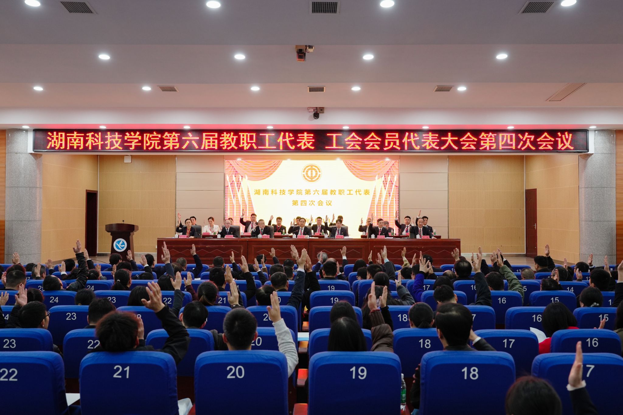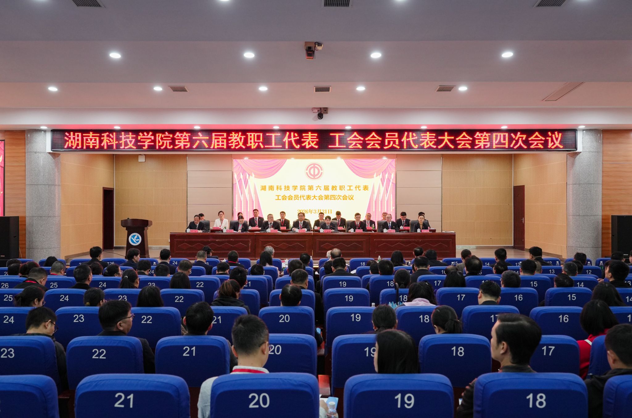 本网讯(记者 向薛峰 摄影 谢志豪)3月31日,bat365官网第六届教职工代表、工会会员代表大会第四次会议在潇湘大讲堂召开。校党委副书记、校长黄创霞等全体校领导,全体代表、特邀嘉宾和列席代表齐聚一堂,共商学校发展大计。