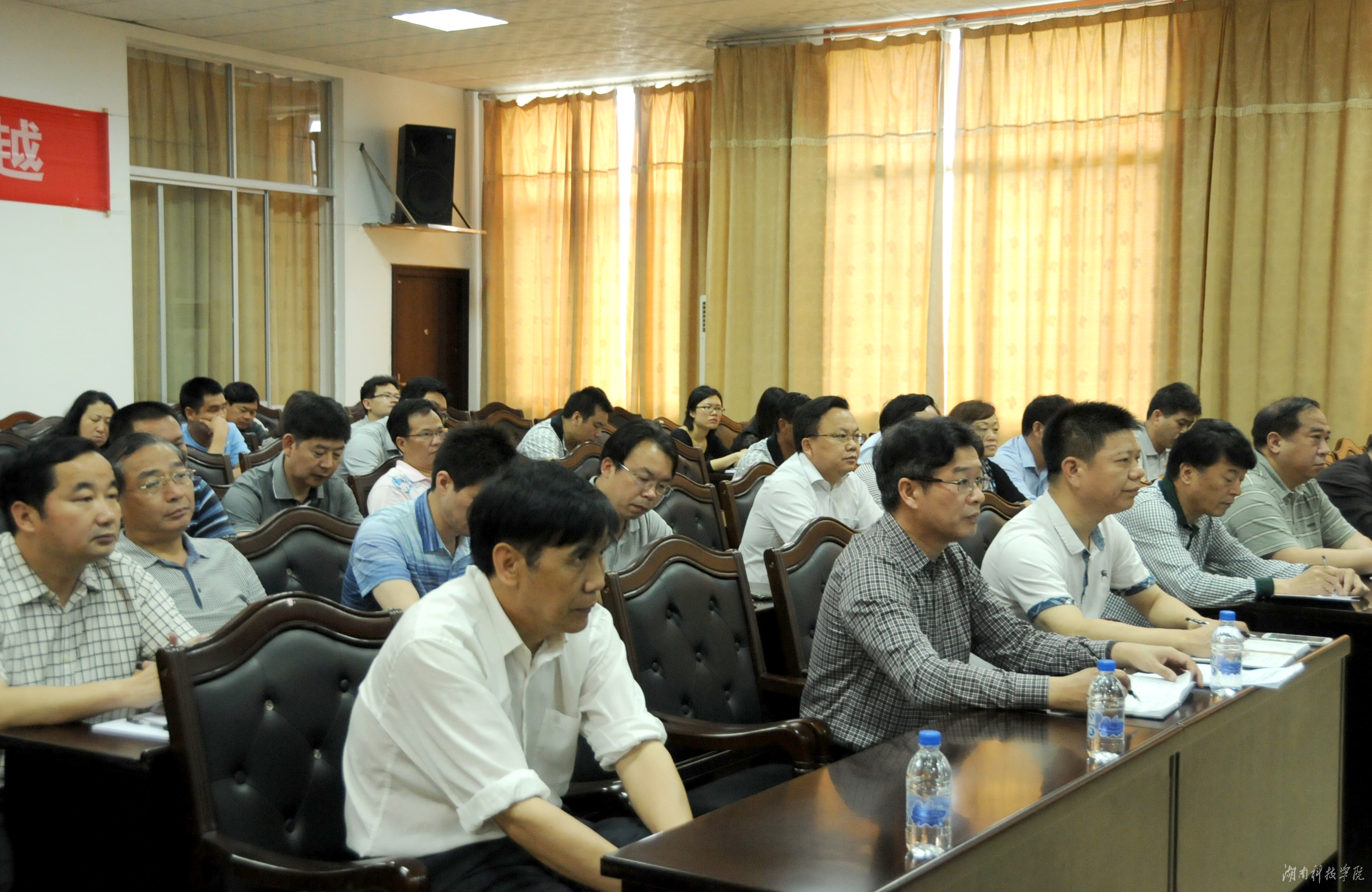 本网讯(记者 段坤 摄影 秦峰)5月20日上午,bat365官网在行政办公楼八楼会议室组织收看全省教育系统“三严三实”专题教育工作视频会。在家校领导宋宏福、程智开、袁先友、陈仲庚及各直属党组织负责人等领导同志认真学习了会议精神。