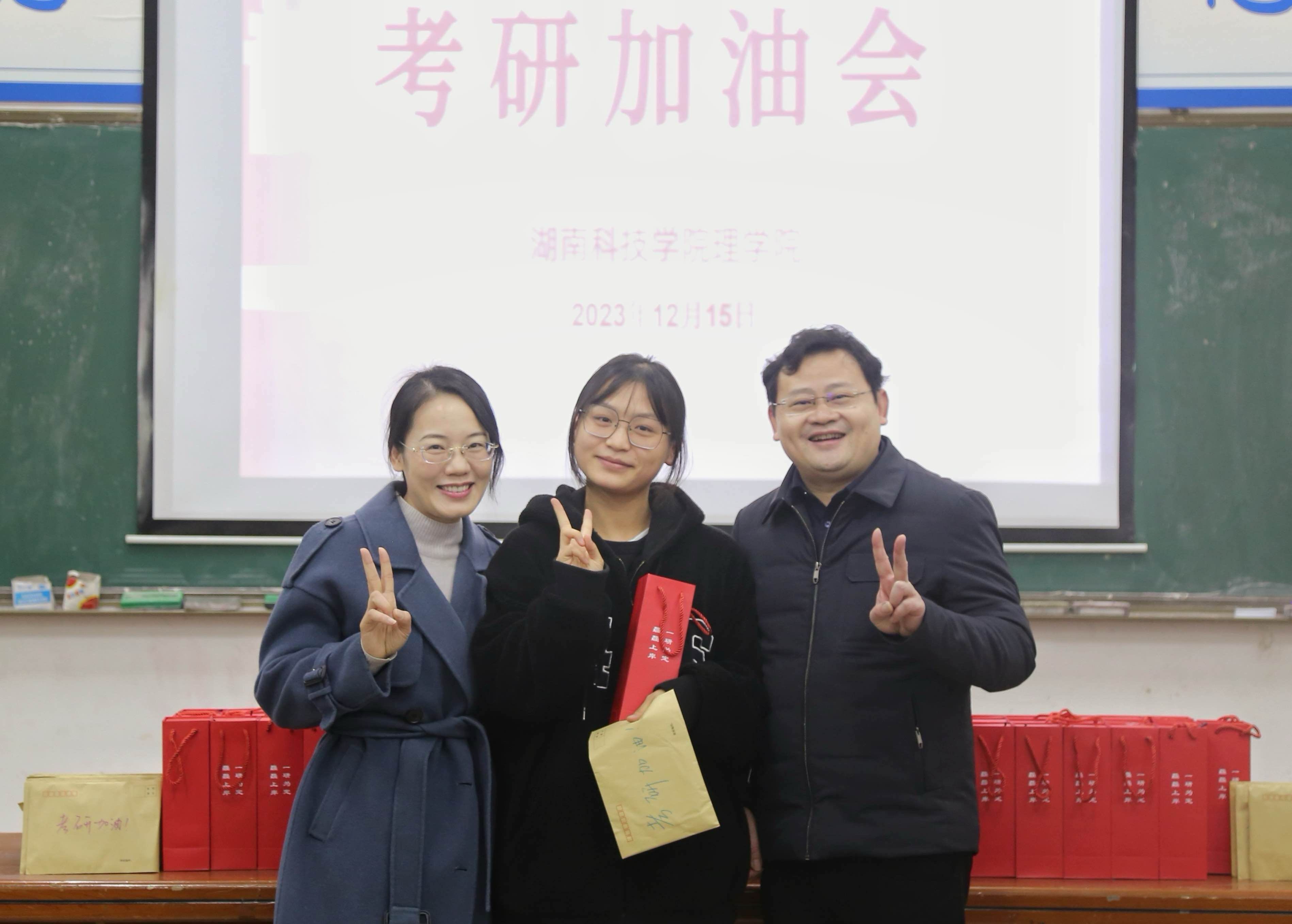 定制保温杯、暖贴、蒸汽眼罩和写满祝福的明信片……理学院用满满的仪式感为考研学子加油助威。同时召开考研加油会,为考研学生送上美好祝福,希望大家学有所成,研有所果。