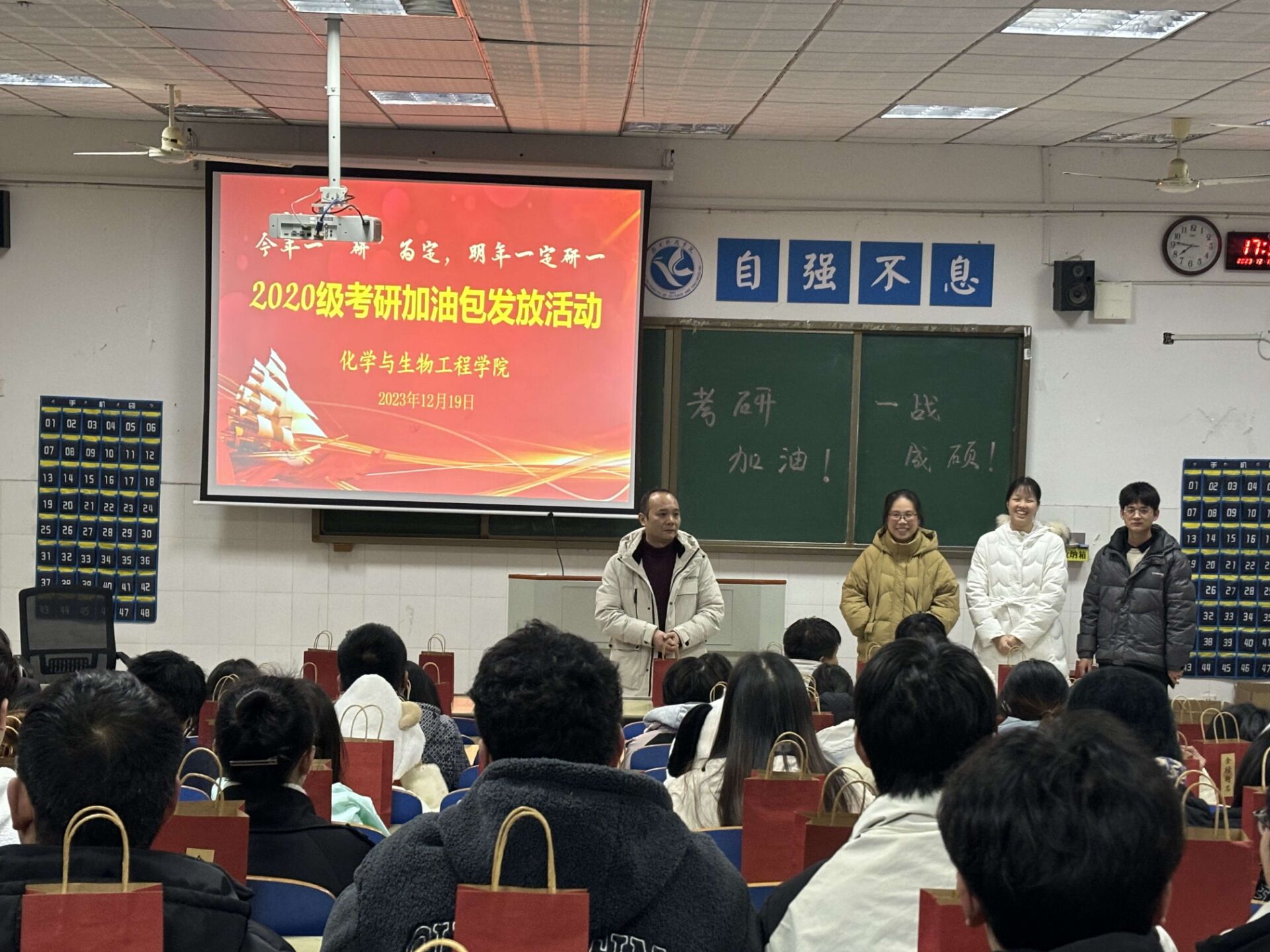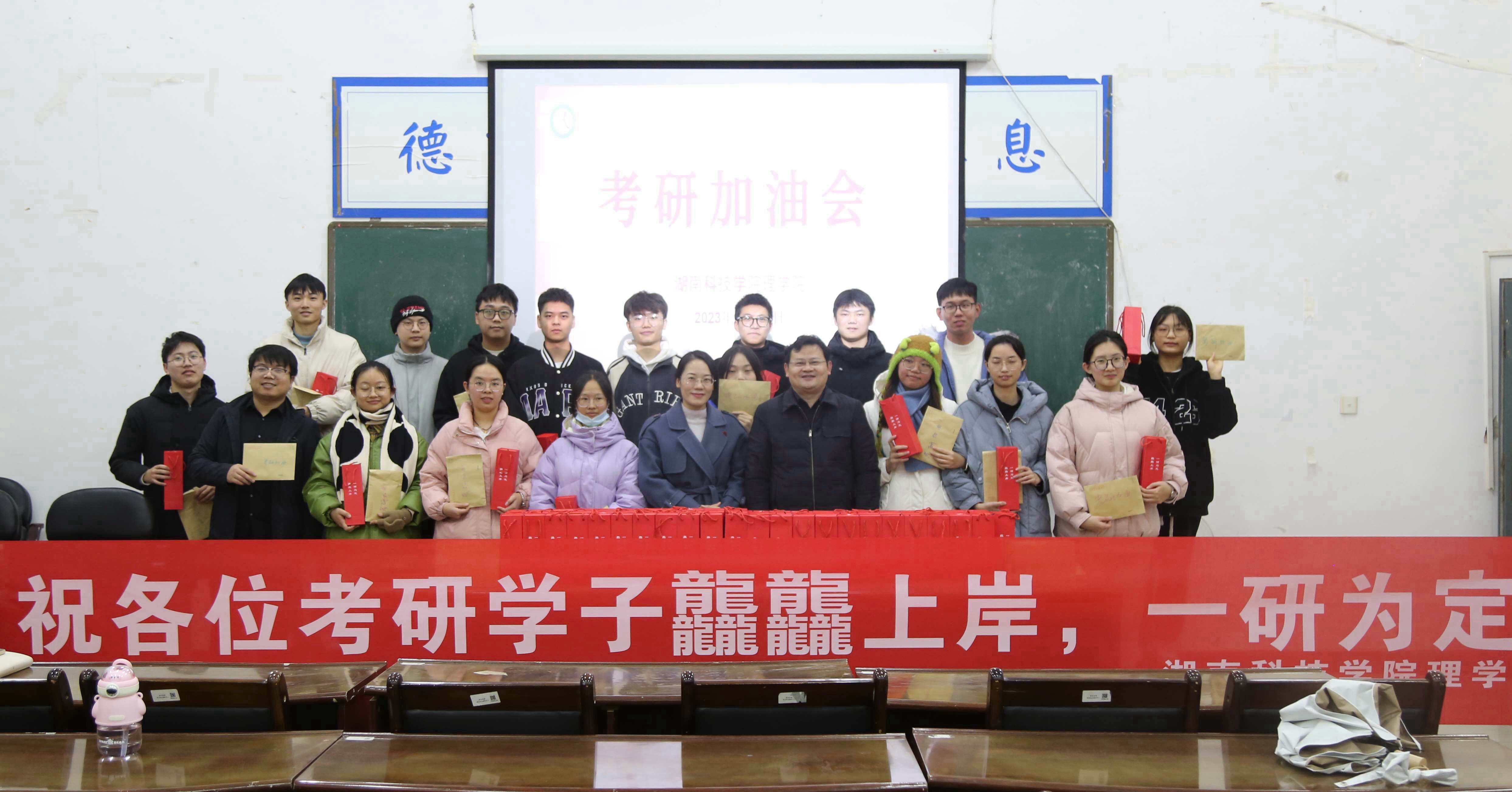 信息工程学院召开“研途启航,一‘研’为定”2024届考研冲刺动员会,为考研学子分析当前考研形势,祝愿每一位备考的学子们都能收获丰厚的回报,终抵彼岸。并为考研学子精心准备了“加油助力大礼包”,一战“橙”硕维c多多的橙子、“巧克”难题能量满满的巧克力……每一份礼物都满载着深深情意。