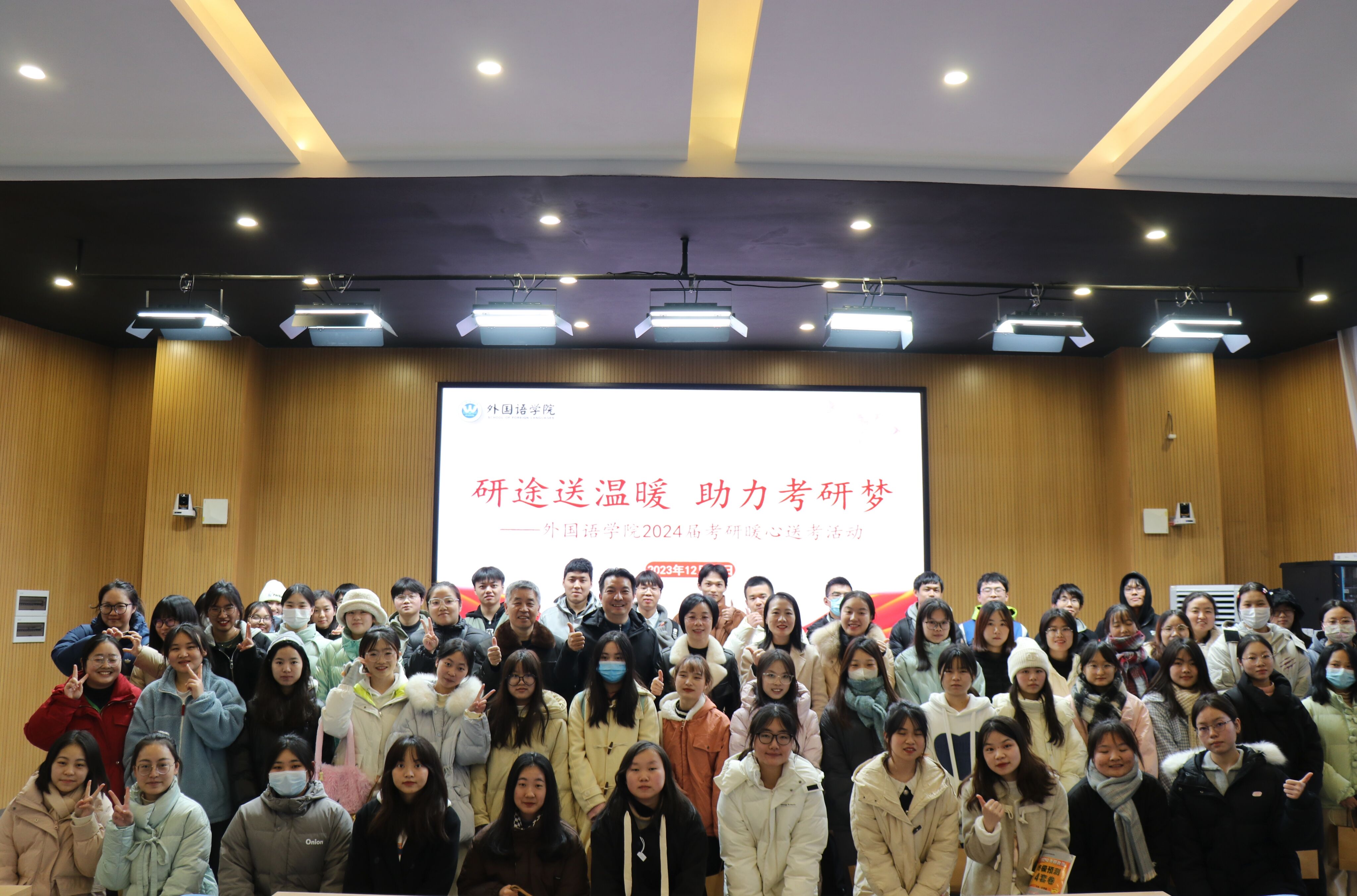 外国语学院举办“研途送温暖,助力考研梦”暖心送考活动,为考研学子加油祝福,为即将踏进考场的学子们送上了精心准备的考研加油包,让他们在寒冷的冬日和紧张的备考氛围中感受到温暖和关怀。