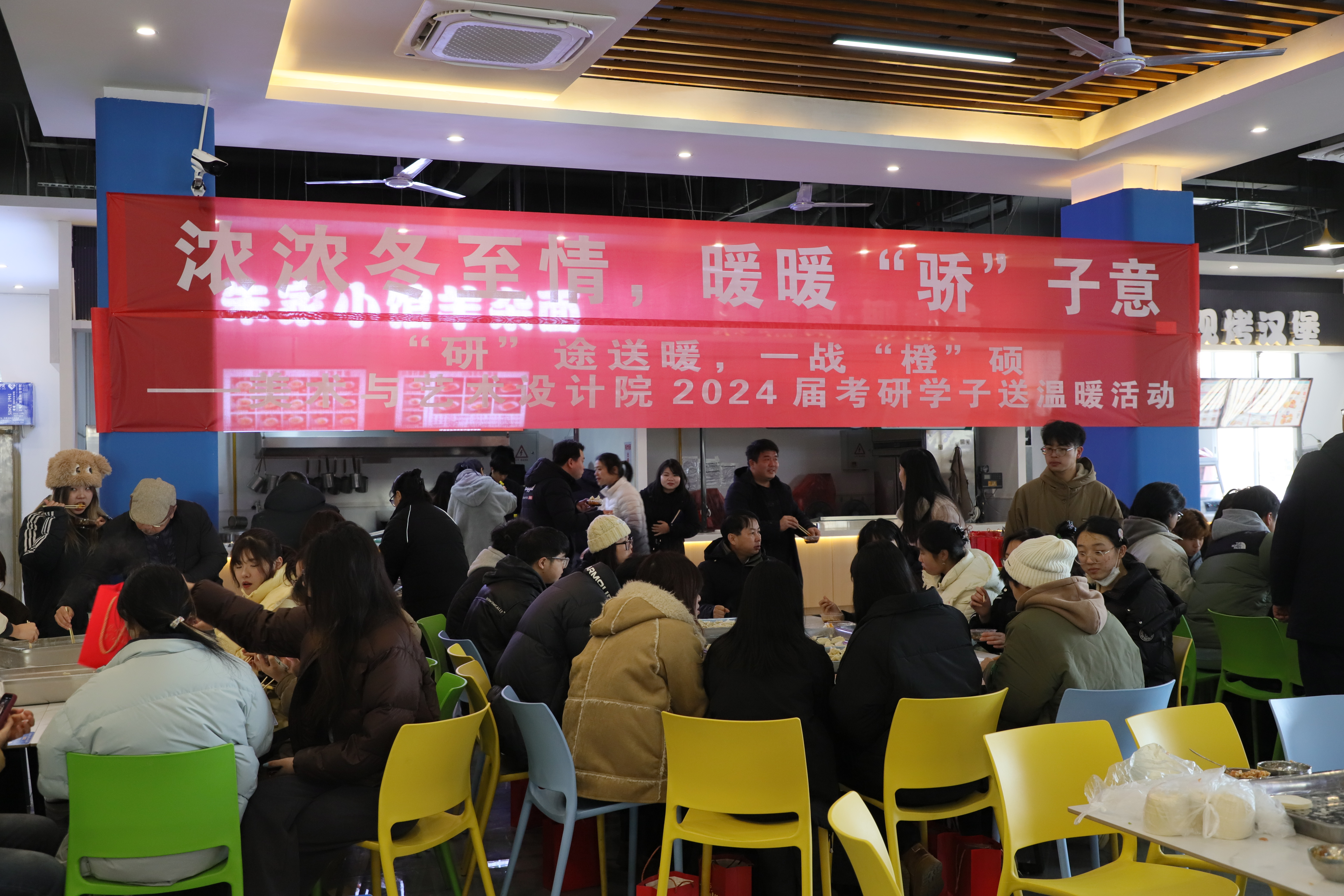 今日同食“饺子”,明日同为“骄子”!美术与艺术设计学院举办“研”途送暖,一战“橙”硕活动,在冬至日为考研学子送上的“状元饺子”为他们加油助威,一份饺子,一碗热汤,蕴含着学院对学子无限的“爱与祝福”。