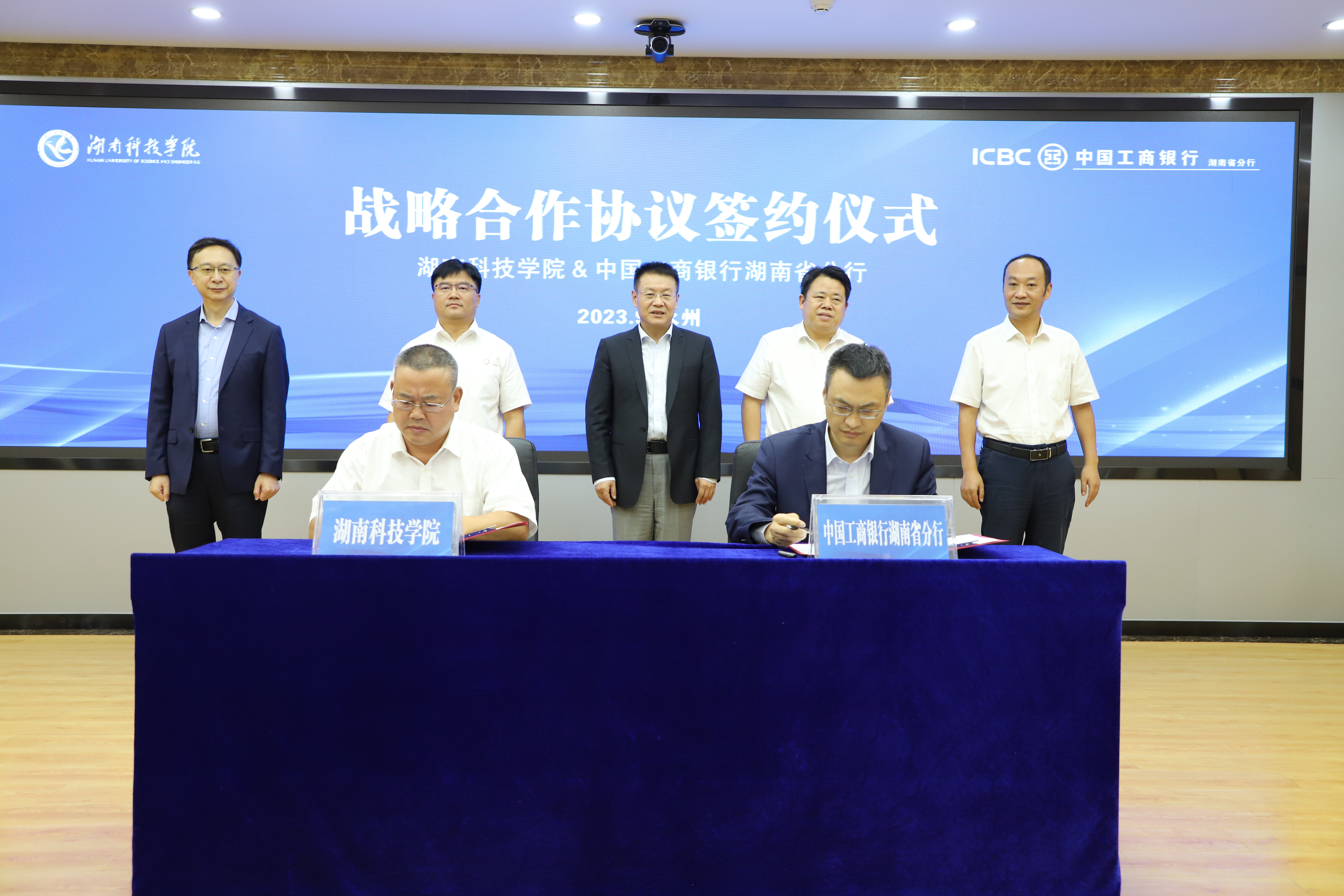 何福林代表学校与中国工商银行湖南省分行签订“全面战略合作协议”。
