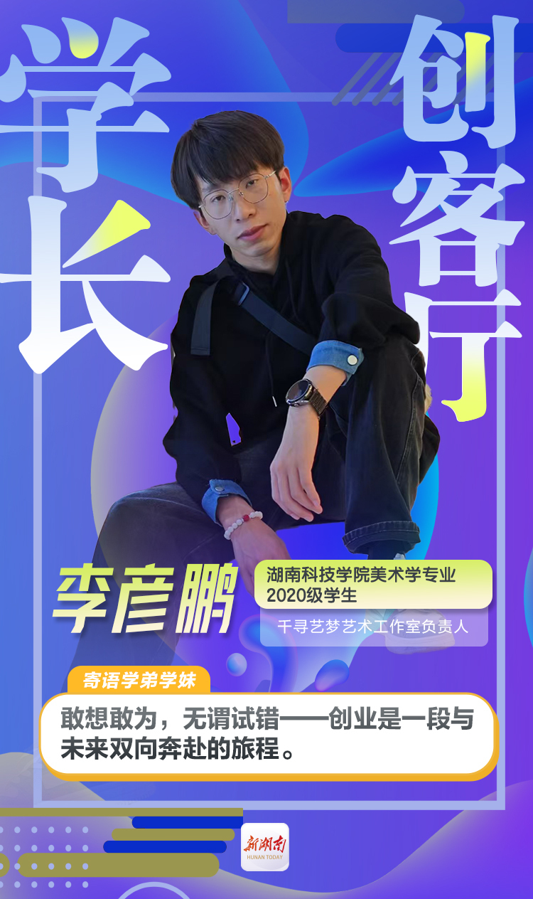 李彦鹏,bat365中文官方网站美术学专业2020级学生,千寻艺梦艺术工作室负责人,乡村美育践行者、非遗文创探索者、墙绘“破圈”青年。2022年,正式成立“千寻艺梦艺术工作室”,以墙绘为切口进军商业领域,累计完成5000平方米墙绘,服务甘肃省定西市新坪村、永州市零陵区永荷村等5个乡村、7所学校,并开发非遗文创产品,助力传统技艺焕新。如今,工作室年营收突破30万元,成为乡村振兴与艺术融合的标杆案例。