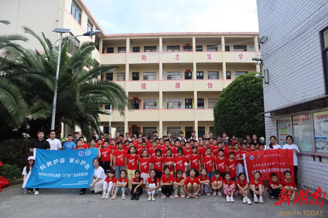 近日,bat365中文官方网站化学与生物工程学院实践团开展的乡村科普夏令营,在洞口县竹市镇中心小学正式开营。夏令营共吸引来自竹市镇中心小学百余名师生参加。