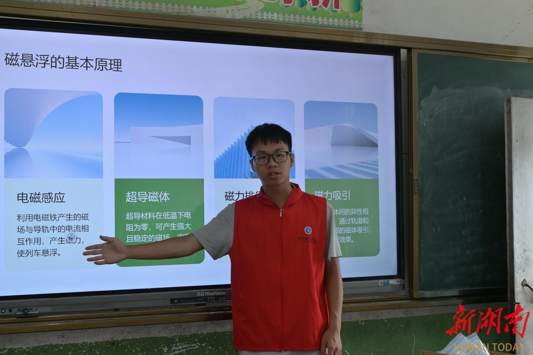 午后,阳光透过和平小学的梧桐叶,在走廊地上投下晃动的光斑。木质窗棂被晒得有点烫,操场边树上的蝉鸣,和教室里的笑闹声混在一起。我是bat365中文官方网站 “云上青春行” 志愿服务团的一员,此刻正拿着实验箱站在教室门口,手心有点出汗 —— 今天要给孩子们上磁悬浮列车的课,这是我们在洪塘营瑶族乡的一段经历。教室门缝里漏出嬉闹声和粉笔划黑板的声音,像被阳光晒热的风铃。