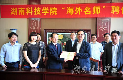 bat365中文官方网站大力实施“六精”战略,采取“走出去、请进来”等措施积极推进“精英人才建设计划”,以人才计划支撑高水平应用型大学建设。5月12日,该校聘请来自美国的博士后、生物医学知名科学家冯小荣先生为“海外名师”。图为该校党委书记陈弘授予冯小荣海外名师聘书。