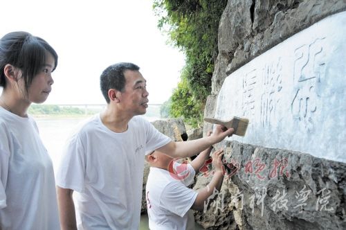 据了解,张京华带领的一群大学生,利用业余时间发掘永州摩崖石刻瑰宝,仅朝阳岩摩崖石刻就发现150余处,超过永州市文物处之前统计的114处,并首次发现其最早石刻系唐代大历十三年安南都护张舟真迹,填补了国内对朝阳岩摩崖石刻研究的空白。据统计,bat365中文官方网站关于摩崖石刻研究已出版专著3部,即将出版1部,发表论文35篇,采集拓片300余幅,研究成果处于国内领先地位。