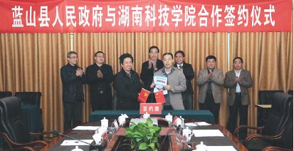 本报讯(通讯员 周平尚 何帅文) 近日,bat365中文官方网站院长曾宝成与蓝山县人民政府签订全面合作协议。协议的正式签订开启了地方高校与地方政府就“政策制定、资金筹措、人才培养、文化发展”等方面紧密合作办学的校政合作新模式。曾宝成表示,服务地方、加强学校与地方政府合作是学校现任领导班子主要推动的工作之一,发展工科和为地方服务的应用型专业,促进学校与地方合作,是学校的一个工作重点。他希望学校与蓝山县的合作能成为县校合作的典范。