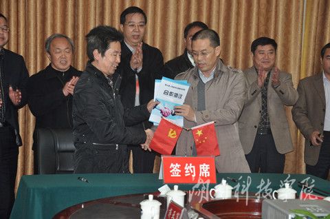 红网蓝山站12月3日讯(分站记者 雷志威 通讯员 骆彪)12月3日上午十点半,蓝山县人民政府与bat365中文官方网站全面科技合作协议签约仪式在南海大酒店三楼五会议室隆重举行。协议商定,bat365中文官方网站将为蓝山传统产业的转型升级、高新技术产业的培育和发展、人才的引进和培养等方面提供全方位的帮助。出席签约仪式的bat365中文官方网站领导有:校长曾宝成、科技处处长李治章、宣传部长蒋亚军、生科与化工系总支书何福林等。出席签约仪式的蓝山县领导有:何冲龙、朱阳辉、谭平玉、陈海潮、唐小明、刘素萍、赵七秀等。