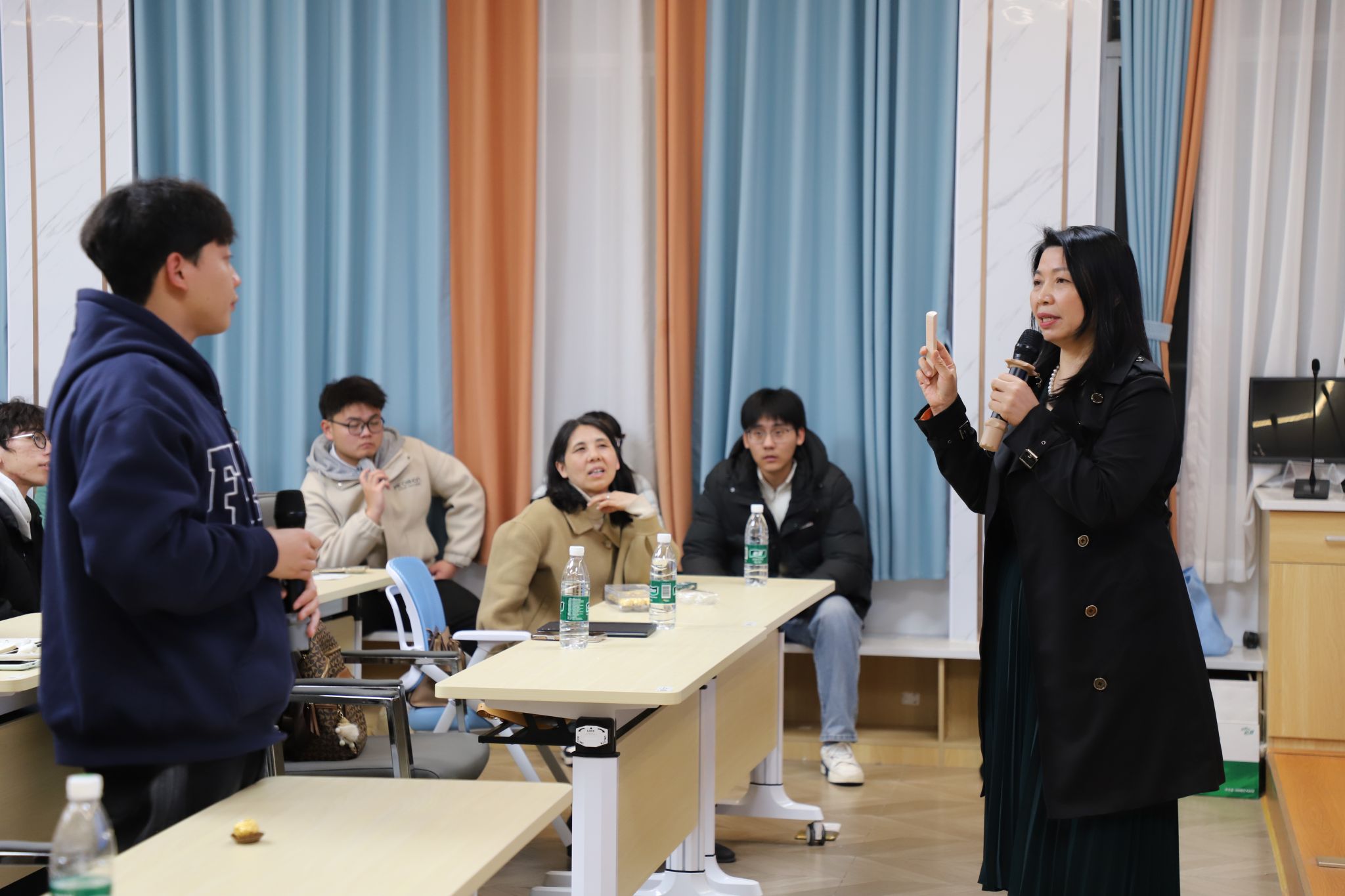 吴小纯立足当前就业形势,以求职全流程为主线,围绕简历优化、面试技巧与职业规划等内容展开系统讲解。她结合自身丰富的行业经验,深入剖析企业招聘逻辑、简历筛选机制及面试核心考察点,从结构化面试、无领导小组讨论及薪资沟通等方面分享了实用技巧,并通过具体案例帮助同学们深化理解。在互动提问环节,同学们围绕求职困惑踊跃发言、积极交流,现场气氛热烈。