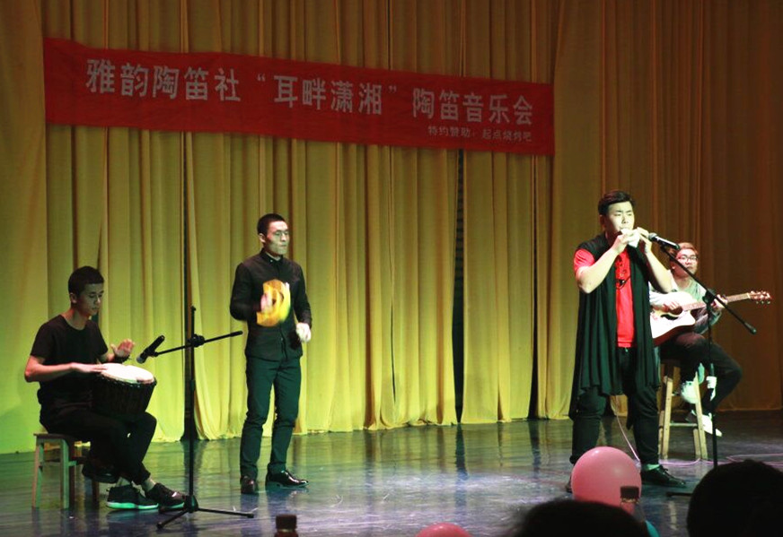 本网讯 一笛弹指,百种感受;一曲绕梁,千般韵味。4月21日晚由音乐与舞蹈学院雅韵陶笛协会主办的“耳畔潇湘”陶笛音乐会在bat365官网小音乐厅举行,来自全校各学院的40余名陶笛爱好者齐聚一堂,共同为观众带来一场音乐盛宴。音乐与舞蹈学院院长邹林波出席。