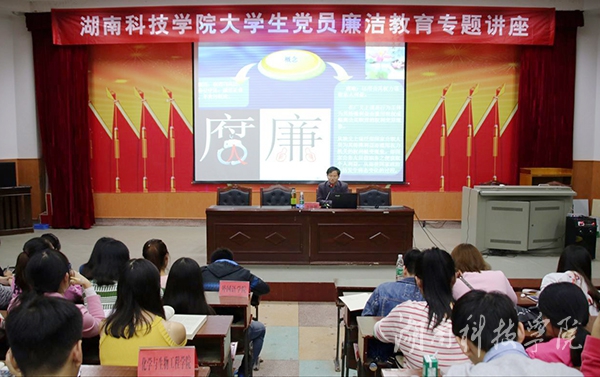 本网讯(通讯员 全伟 张金灵)10月22日晚,由学校廉洁教育活动领导小组主办,马克思主义学院学生党支部承办的“大学生党员廉洁教育专题讲座”在明德楼报告厅举行。李钟麟教授以“弘扬传统廉洁文化 加紧大学生党员廉洁文化建设”为题给全校大学生党员上了一堂生动的廉洁教育课。