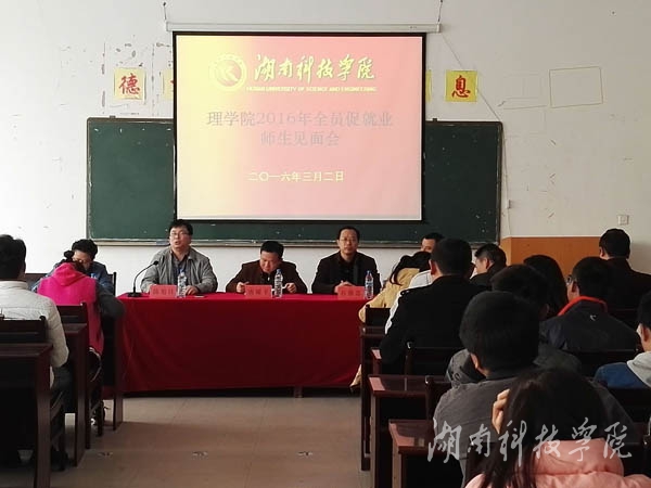 本网讯(通讯员 谢娟 阳佳)3月2日,理学院于明理楼101室召开全员促就业师生见面会。该院院长唐耀平、党总支书记陈旭日,教务处处长石循忠等相关领导与百名大四学生面对面交流。