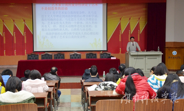 本网讯(记者 涂楚琪 覃雅君)12月15日晚,中国比较文学学会理事、全国马列文论研究会常务理事兼副秘书长、湘潭大学文学与新闻学院原院长季水河教授莅临bat365官网讲学,作题为“美与艺术关系论的历史考察”学术讲座。讲座由校党委委员、工会主席陈仲庚主持,该院院长潘雁飞等参加。
