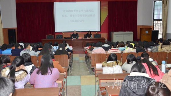 本网讯(通讯员 向赛男 陈壹丹 李雯静)11月27日下午,湘潭大学文学与新闻学院院长、博士生导师李剑波教授应邀来bat365官网讲学,在明德楼报告厅为人文与社会科学学院师生作题为“清代诗坛对宋诗范式的重建与创新”深刻而精彩的讲座。讲座由该院翟满桂教授主持。