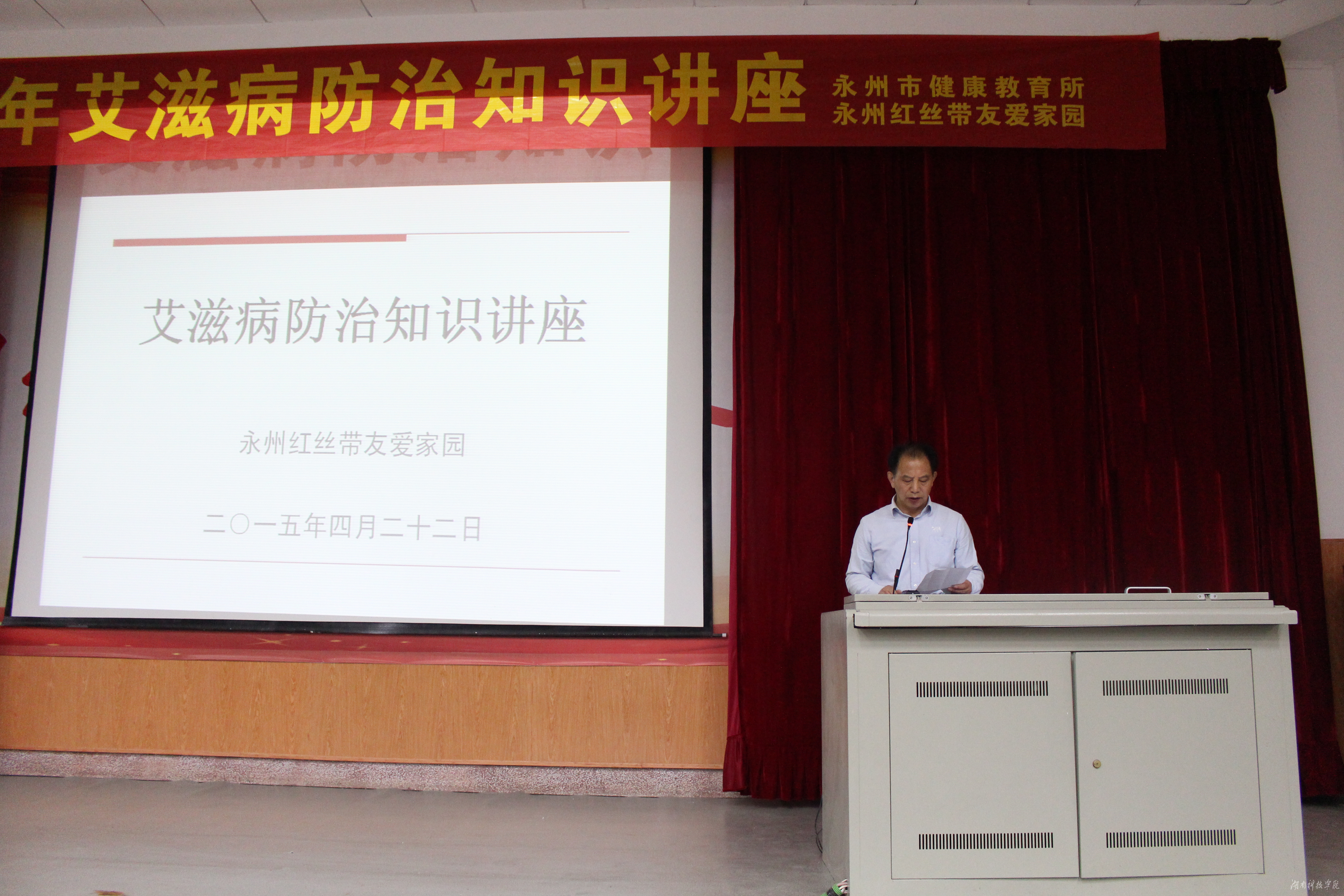 本网讯(通讯员 王晓娜)为引导大学生增强艾滋病预防意识,宣传普及防治知识,4月21日晚,由大学生心理协会、大学生心理健康服务组织的艾滋病预防知识讲座在一教报告厅举行。讲座邀请永州红丝带友爱家园的理事长、副主任医师邓大宏为主讲嘉宾,各教学学院心理服务部干部、班级心理委员、心理信息员共500余人听取讲座。