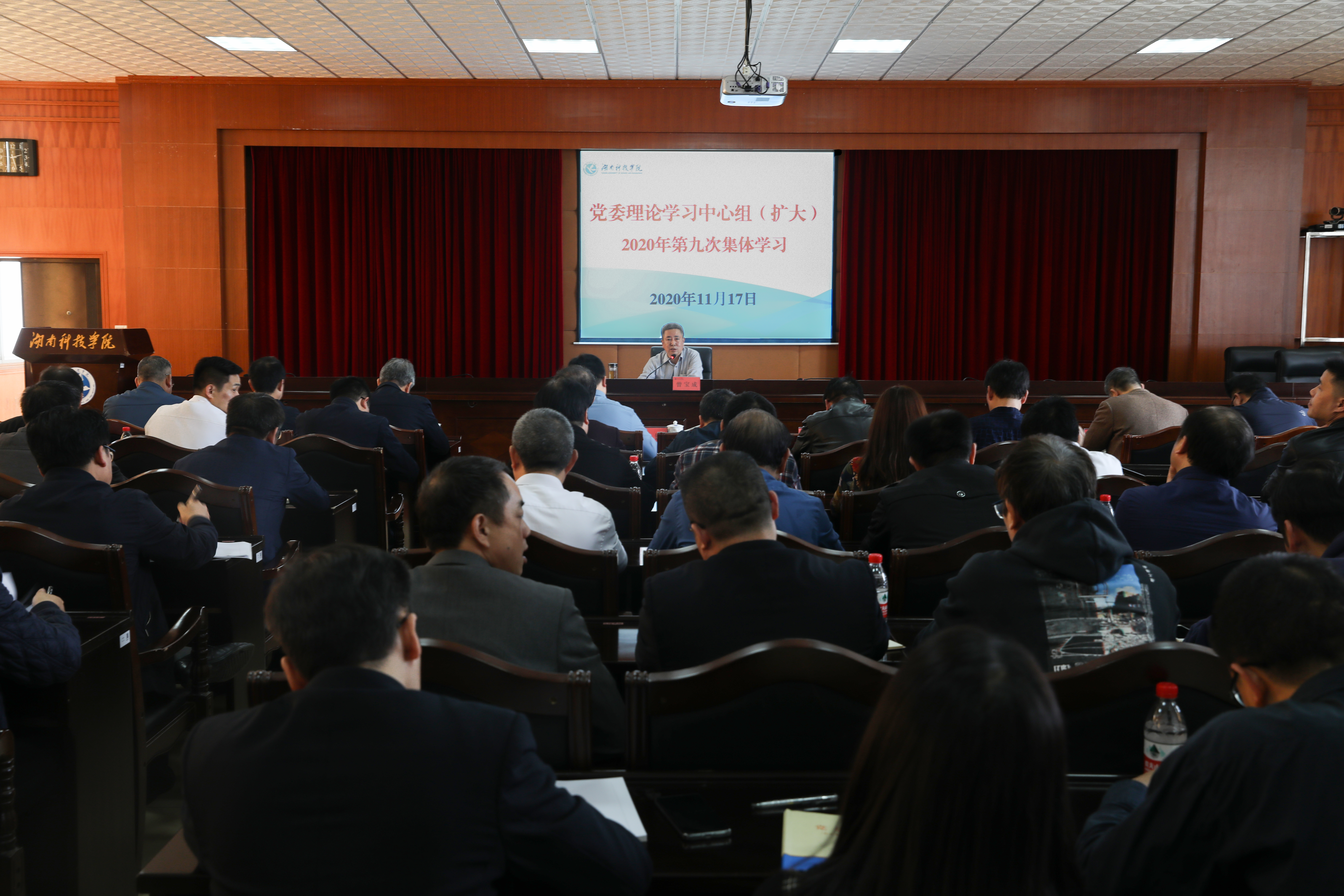 本网讯 11月17日下午,学校召开党委理论学习中心组(扩大)会议,深入学习贯彻党的十九届五中全会精神,全面把握国家“十四五”规划和2035远景目标要求。会议还组织全体参会人员集中观看了“党的十九届五中全会精神中央宣讲团报告会”视频,听取了中央宣讲团成员,教育部党组书记、部长陈宝生同志作的宣讲报告。校党委书记曾宝成,党委副书记、校长李钢,全体党委委员及副处级以上干部参加学习。