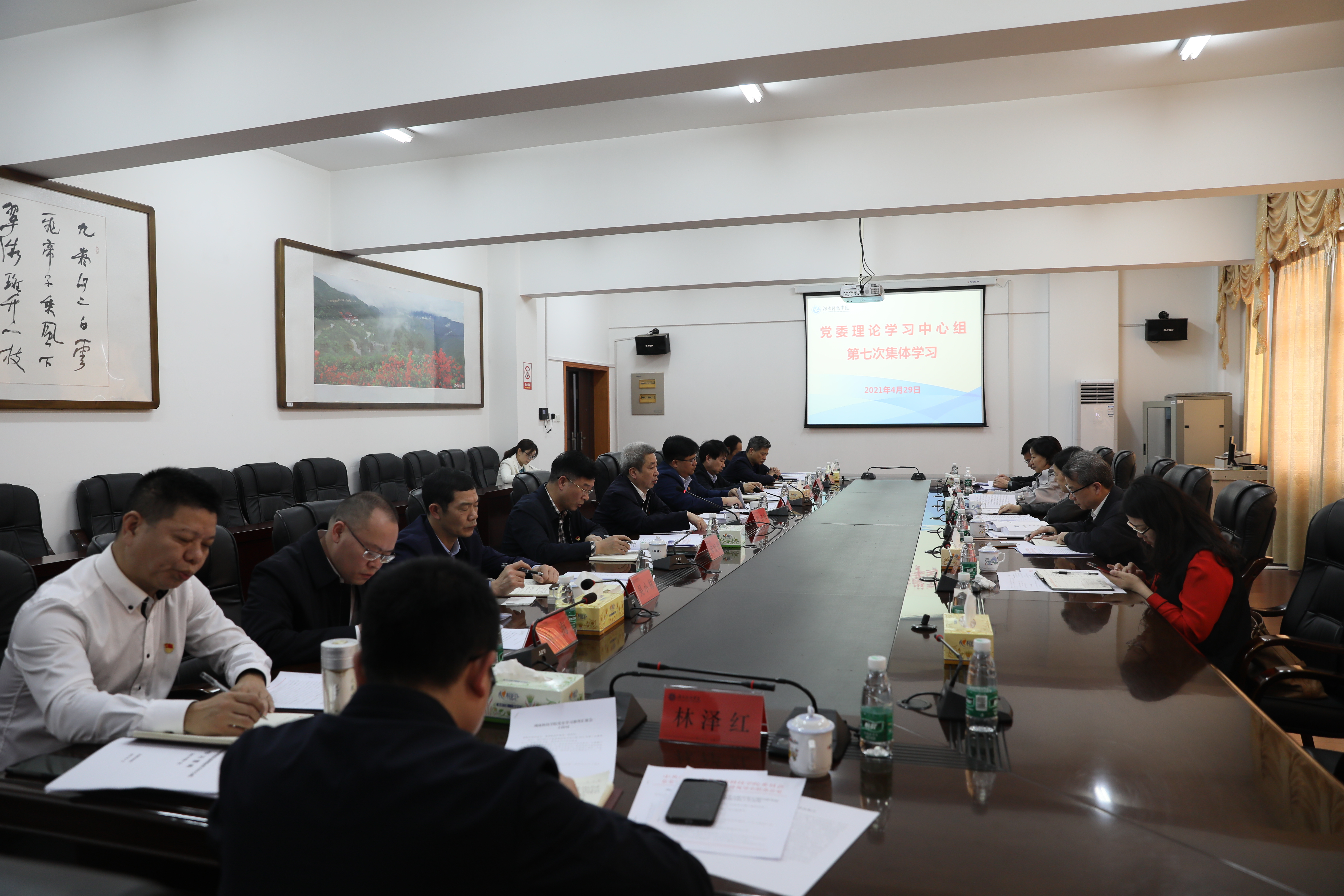 本网讯 4月29日下午,学校举行党委理论学习中心组2021年第7次集体学习,深入学习贯彻习近平总书记在清华大学考察时的重要讲话精神。省委教育工委党史学习教育第五巡回指导组组长、省教育厅党组成员、工委委员、一级巡视员徐伟一行到会指导。党委书记曾宝成主持会议。
