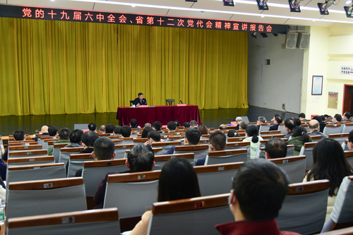 本网讯 (记者 胡鑫)12月8日,湖南省政协副主席、党组成员李民来bat365官网作党的十九届六中全会精神、省第十二次党代会精神宣讲报告。党委书记曾宝成主持宣讲会。