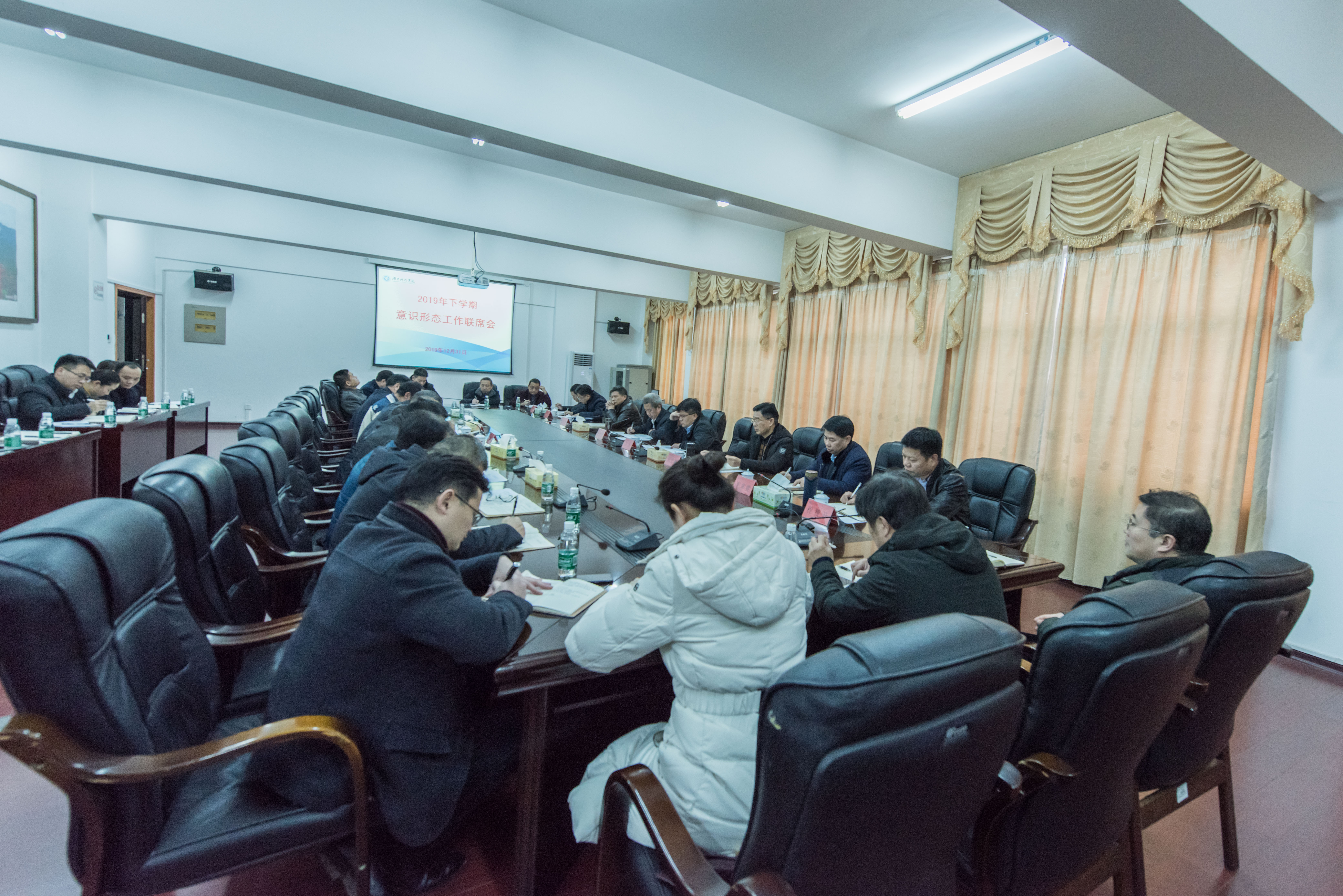 本网讯 12月31日下午,学校组织召开2019年下半年意识形态工作分析研判联席会议。党委书记曾宝成,校长李钢,全体校领导、党委委员,党政办公室、纪委(监察处)、教务处、学生工作部(党委武装部)、科技处、党委教师工作部(人事处)、保卫处(综治办)、国际交流与合作处、团委、信息化办、学报编辑处、马克思主义学院等职能部门和教学学院主要负责人、各直属党组织书记参加会议。会议由曾宝成主持。
