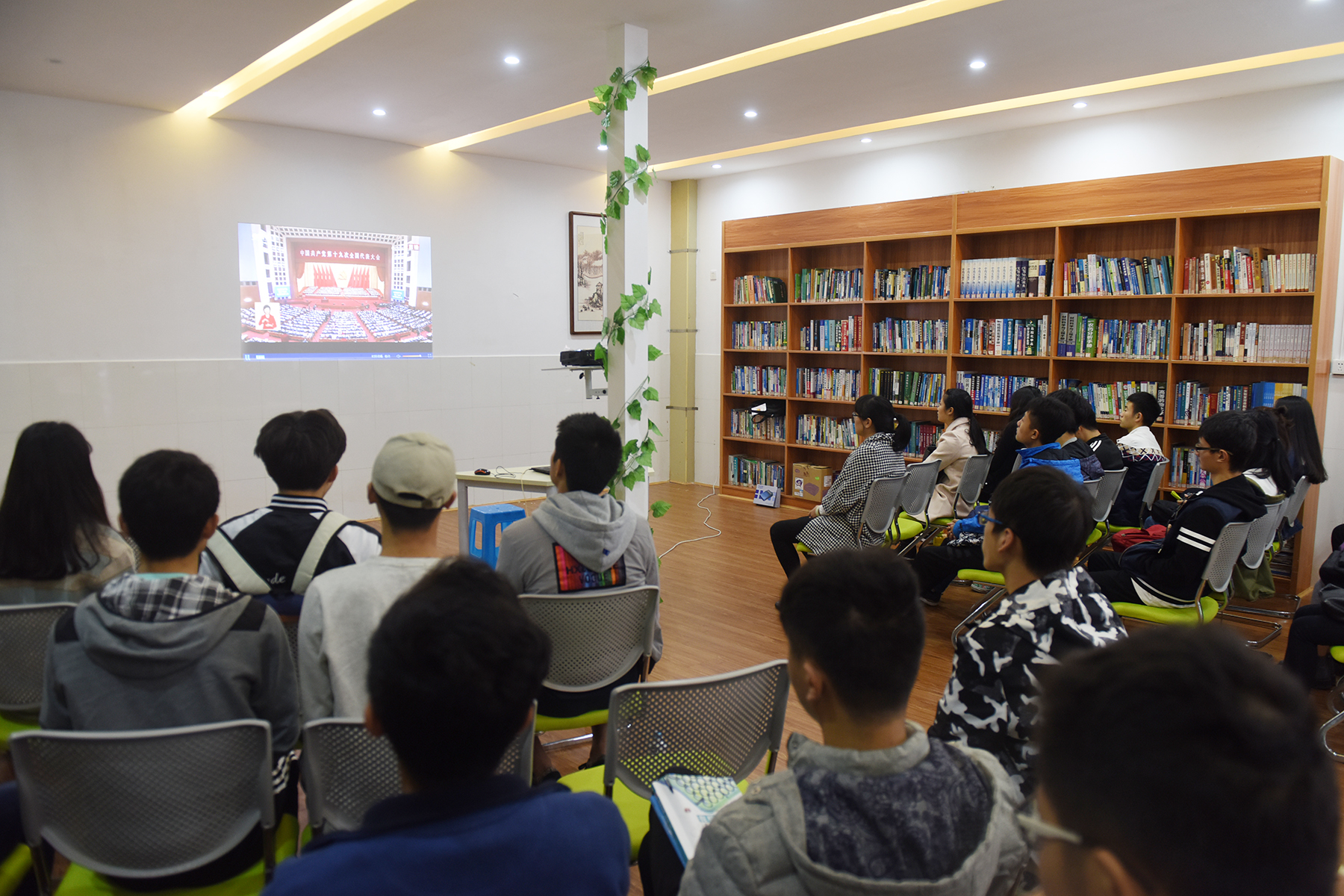 学校师生员工收看党的十九大开幕盛况(图)