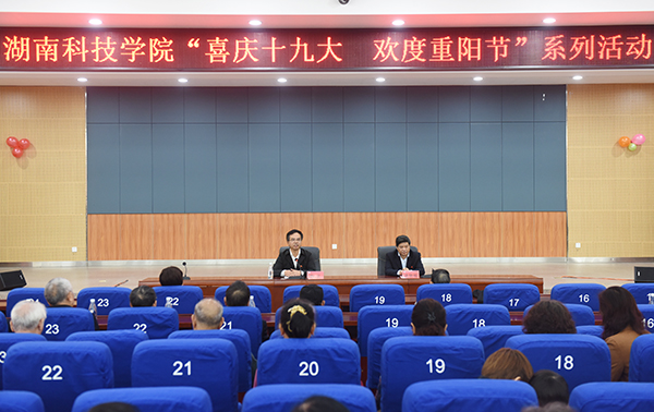 本网讯 10月27日,在一年一度重阳节来临之际,校党委书记陈弘与退休老同志齐聚一堂,作党的十九大形势报告并通报学校发展情况和重要工作。报告会由党委副书记唐艳明主持。